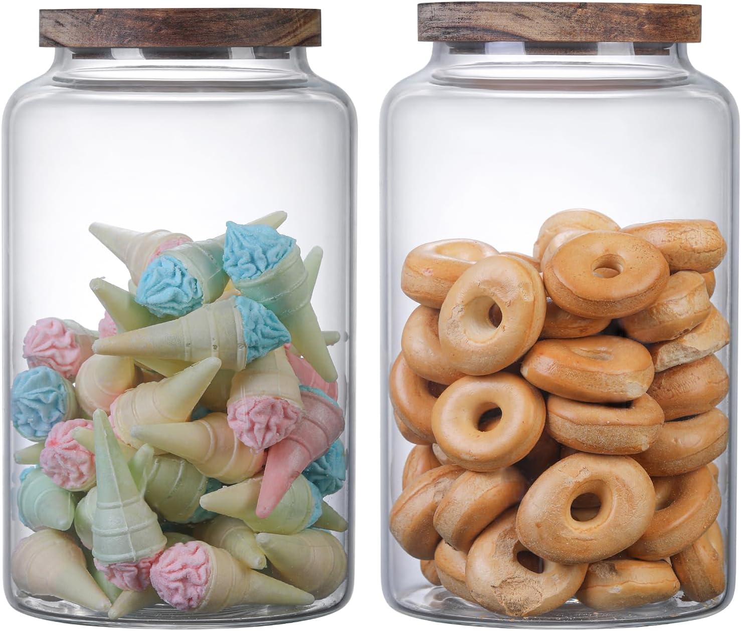 - ★ AIRTIGHT WOOD LID WITH SILICONE RING - Acacia Lid with sealing strip , food-grade wood lid, glass jar made by food grade material ,it is healthier choice. Superior quality seals keep out dust, and other contaminants. Your food will stay fresher for longer and be seamlessly organized.Don't let any chemical flavors or microplastics leach into your coffee beans and food.