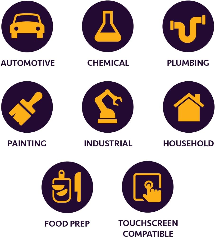 - MULTIPURPOSE & TOUCHSCREEN FRIENDLY: Designed for versatility—perfect disposable gloves for food handling, cleaning, tattooing, automotive work, and more. Textured fingertips ensure a secure grip, while touchscreen compatibility adds modern convenience. Latex-free for reduced risk of allergic reactions.