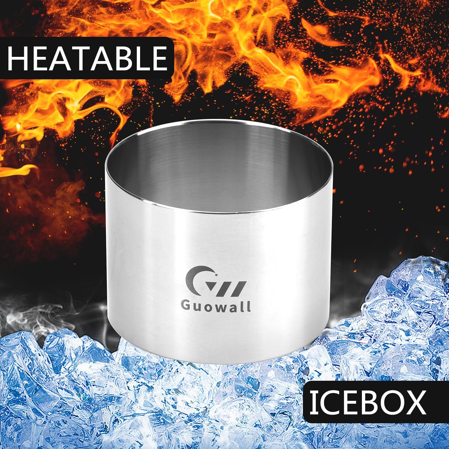 Guowall 6 pack Seamless Mousse Ring Set 3 inch Stainless Steel Round Cake Cutter Food Pastry Mold for Baking (Includes 1 Lifter, 1 Pusher and 6 Rings)