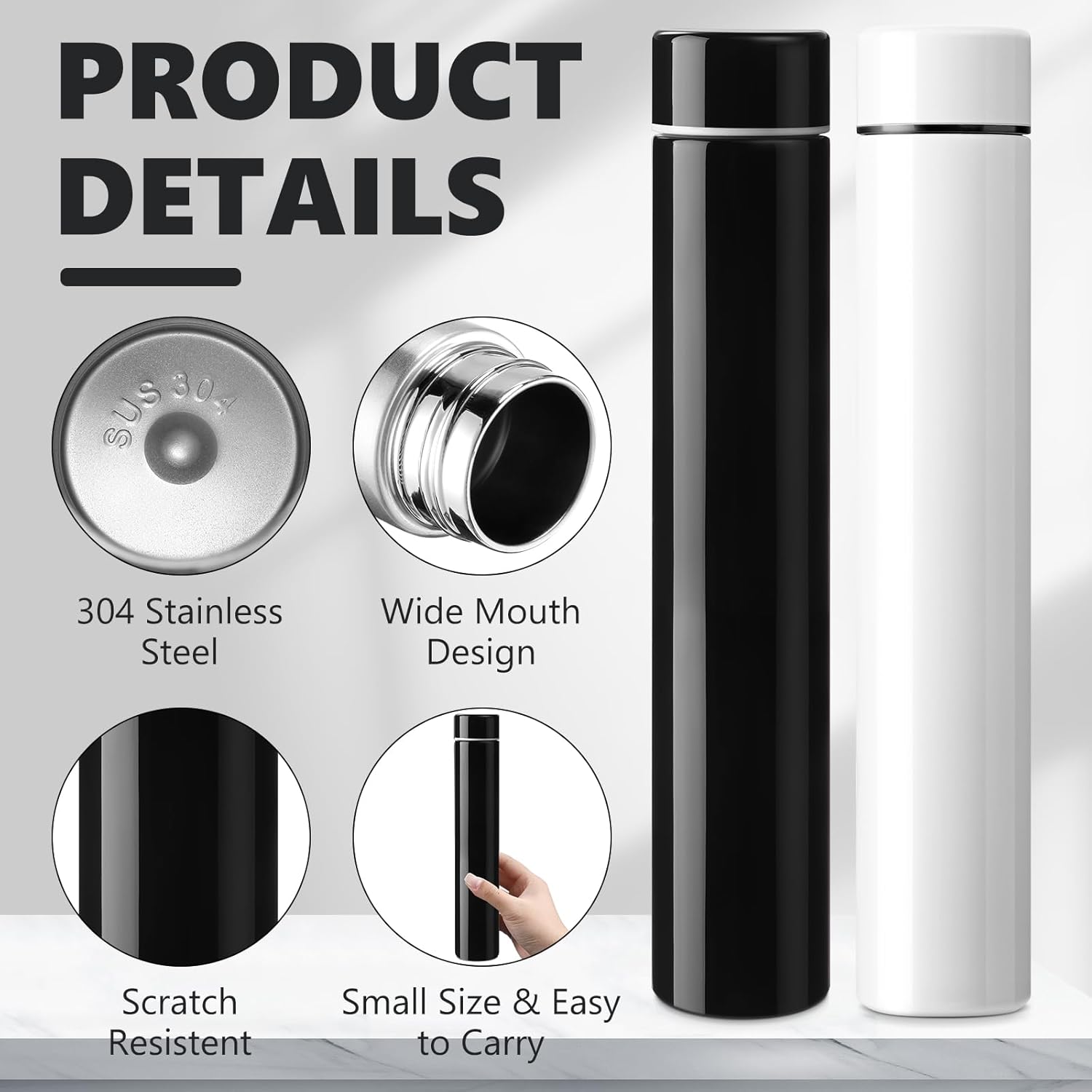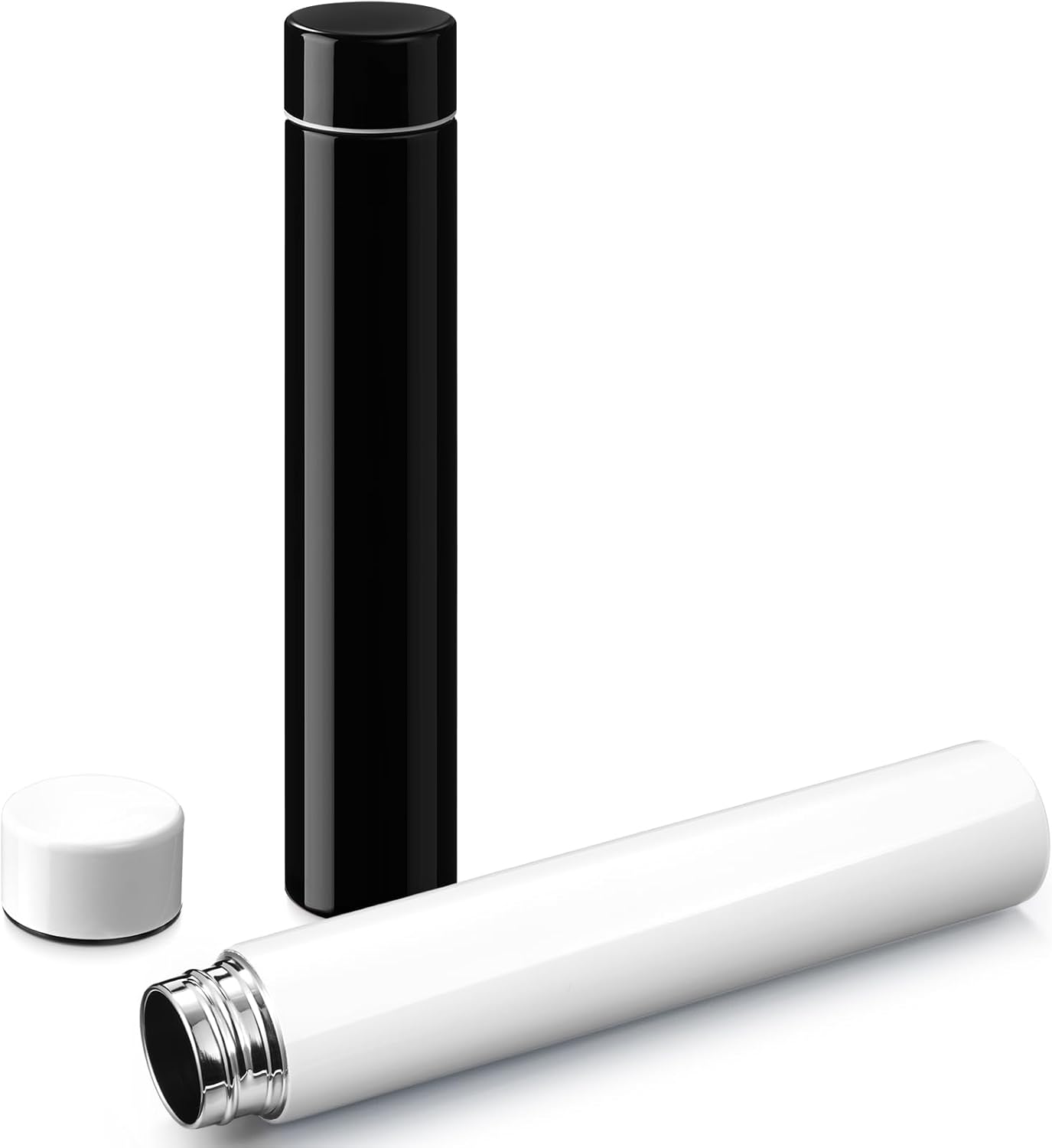 Vesici Slim Water Bottle 8.8 oz Small Stainless Steel Purse Compact Insulated Water Bottles Camping Travel Backpack Pocket Flask for Car Cold Coffee Tea(Black, White,2 Pack)