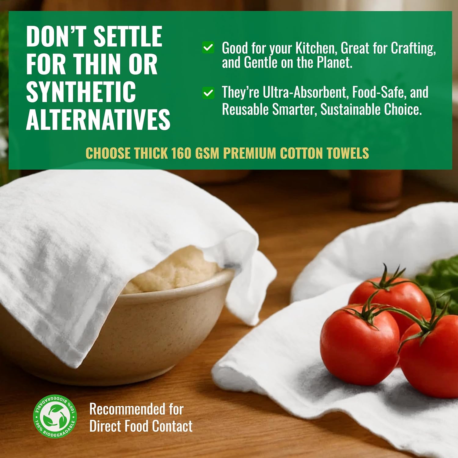 - MULTIPURPOSE: Their lint-free pure ring-spun cotton composition makes them perfect for drying glassware, hands and surfaces. Moreover, they excel at tasks like cheese straining, salad spinning, and even serving as reliable dough covers for baking.