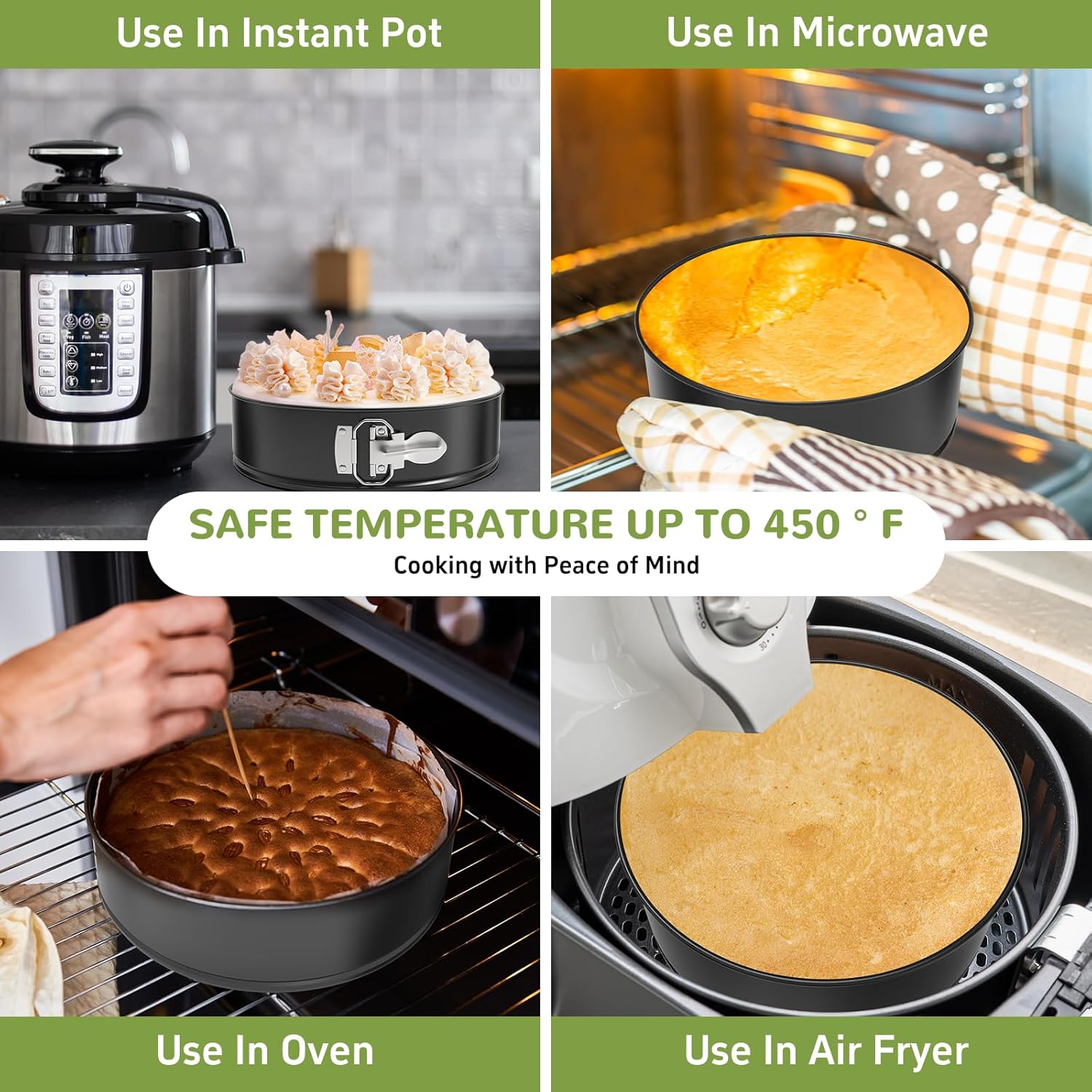 - Size: ZeroPone Spring Form Pan for Cheesecake: Diameter 9” /height 2.6”, please check the size carefully before ordering. High-quality materials enable the pan to heat up quickly and evenly in the microwave or oven. It is safe up to 450 degrees Fahrenheit