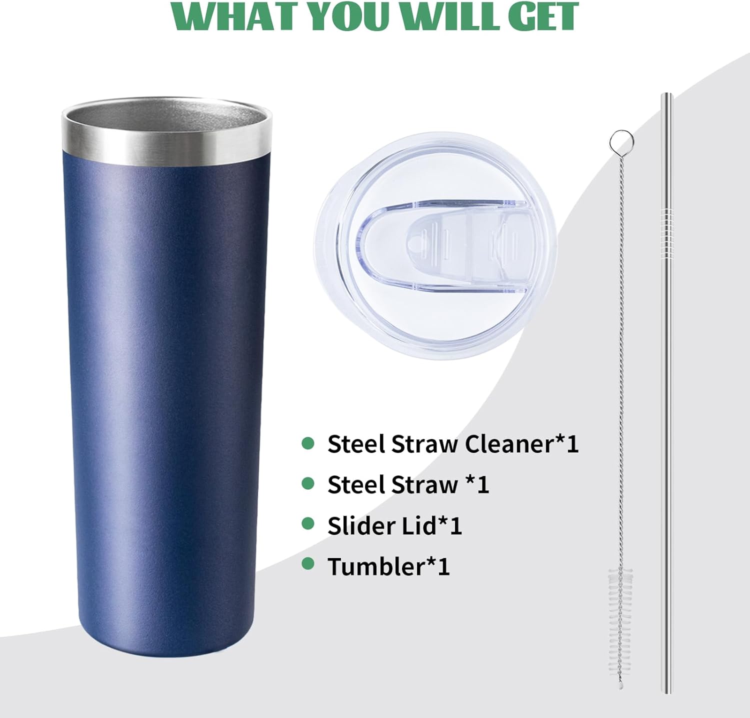 20 oz Skinny Tumbler with Lid and Straw,Stainless Steel Vacuum Insulated Tumbler Cup Double Wall Leak-proof Coffee Mug,Travel Thermal Water Tumbler for Home,Office,Outdoor(Navy Blue,1)