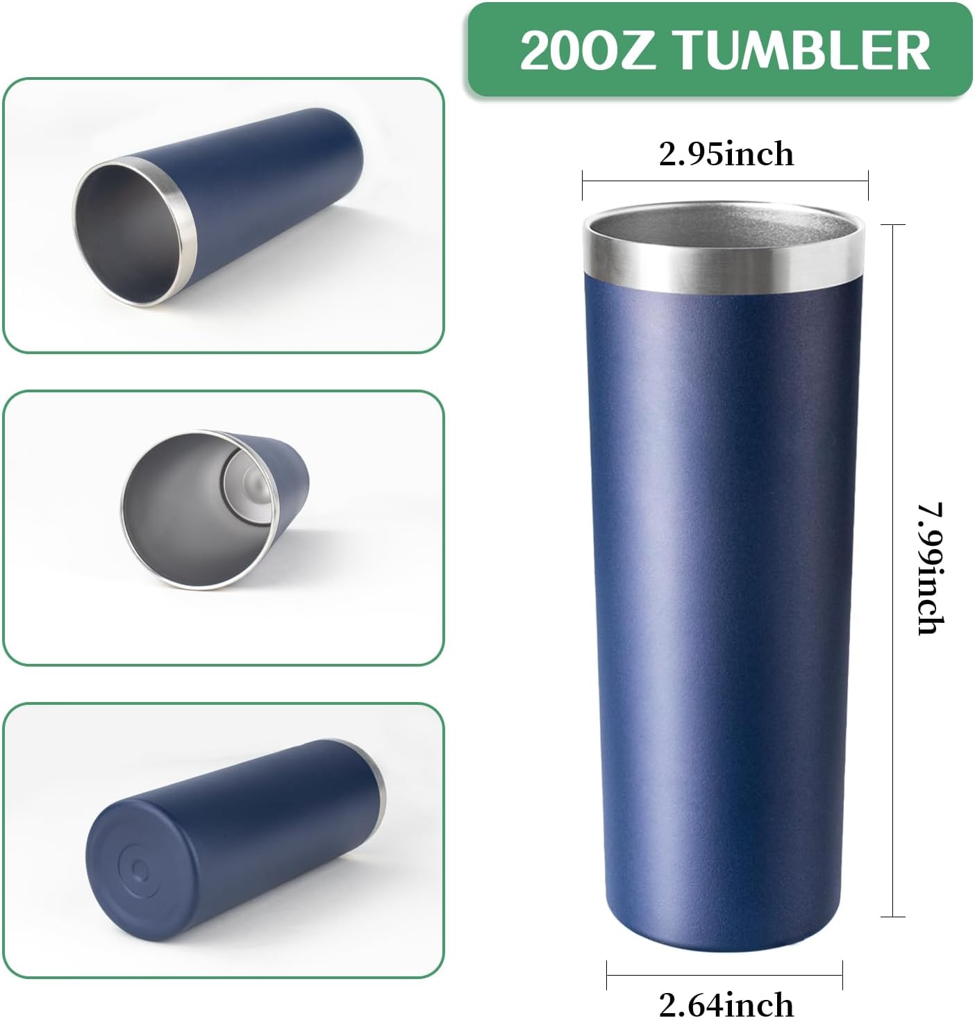 20 oz Skinny Tumbler with Lid and Straw,Stainless Steel Vacuum Insulated Tumbler Cup Double Wall Leak-proof Coffee Mug,Travel Thermal Water Tumbler for Home,Office,Outdoor(Navy Blue,8)