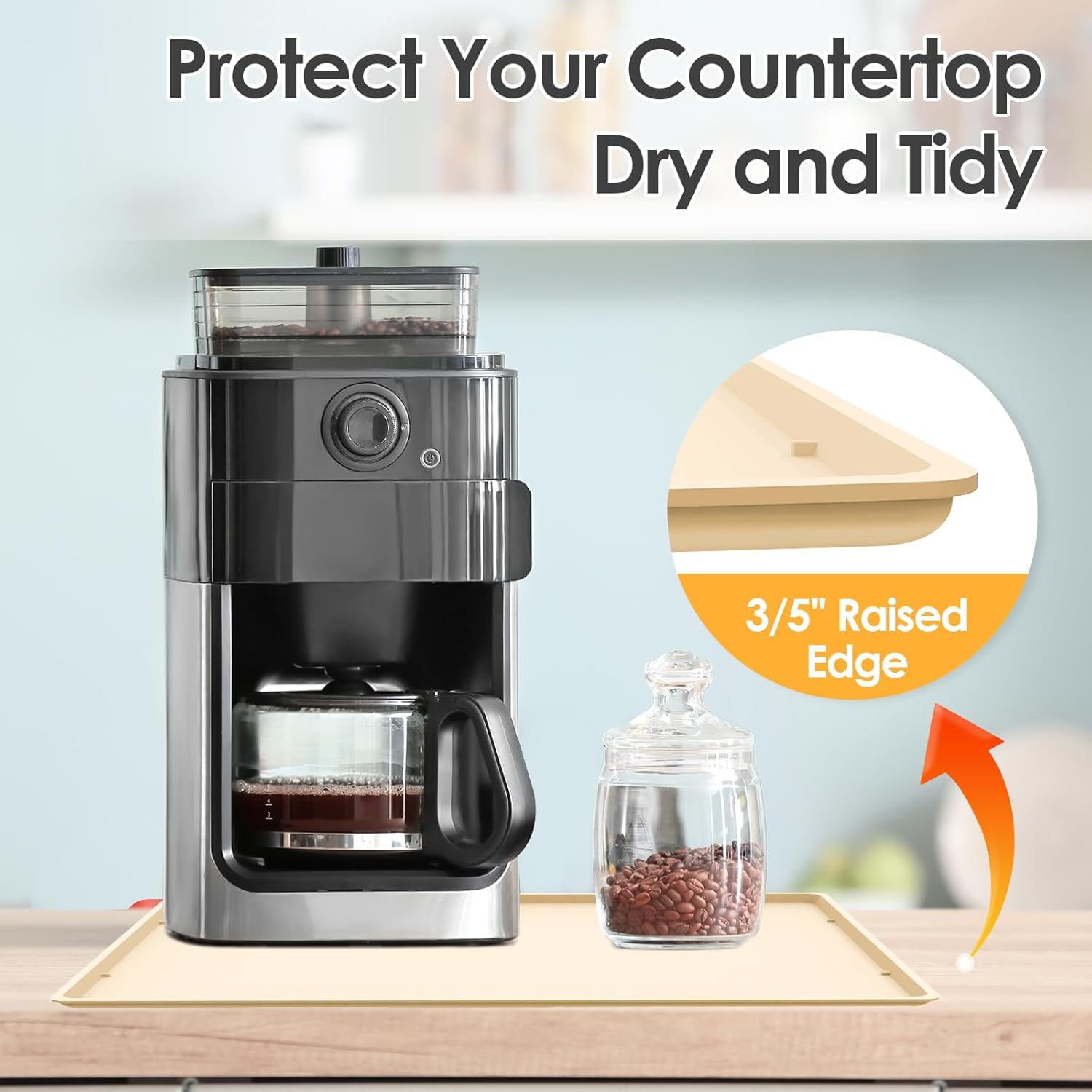 TOHONFOO Silicone Coffee Maker Mat with Lip, 19.7'' x 15'' Heavy Duty Coffee Maker Mat for Countertops, Coffee Tray Fit Under Coffee Machine Appliance Automatic Machines Espresso Accessory, Beige
