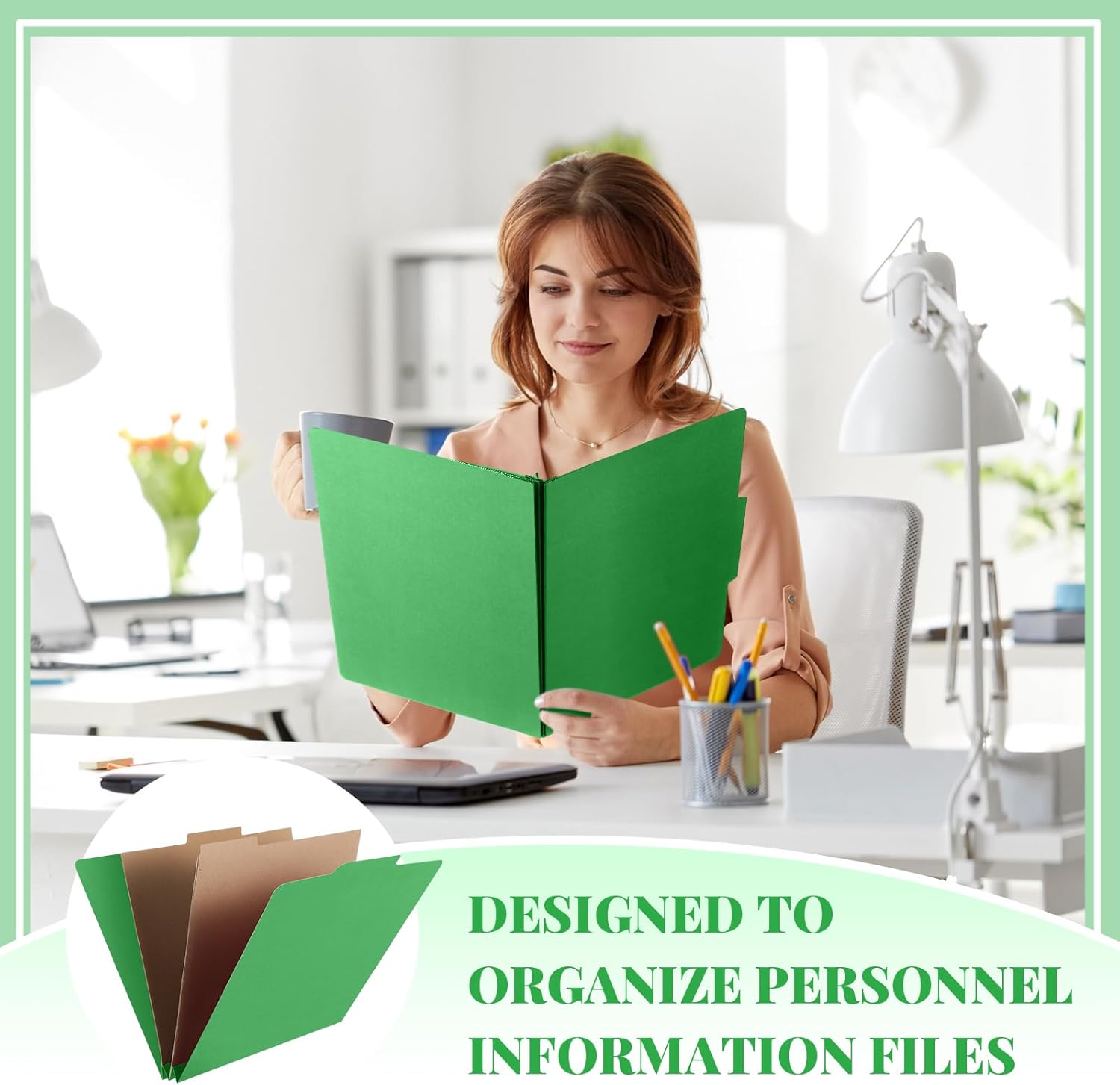 12 Pcs Classification Folders Letter Size, Back to School Supply for Teacher, Student, 2 Pocket Dividers Pressboard File Folder Bulk with 2 Fasteners, 2 in Expanding File Organizer (Green)
