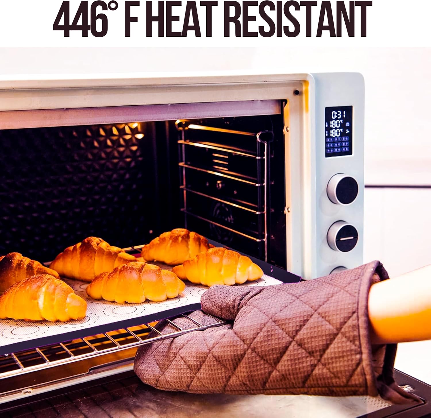 - HIGH‑QUALITY, FOOD‑SAFE MATERIAL – Crafted from 100% platinum-cured, odor‑free silicone for even heat distribution up to 480°F, making these mats safe for ovens, microwaves and even dishwashers for easy cleaning and maintenance.