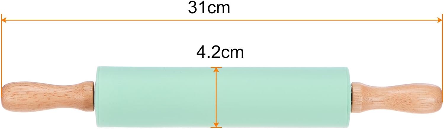 - Material - Silicone, the mini silicone rolling pin is heat-resistant, stain-resistant, and non-stick, making it easy to clean and roll out dough. The sturdy solid wood handle ensures stability and durability.