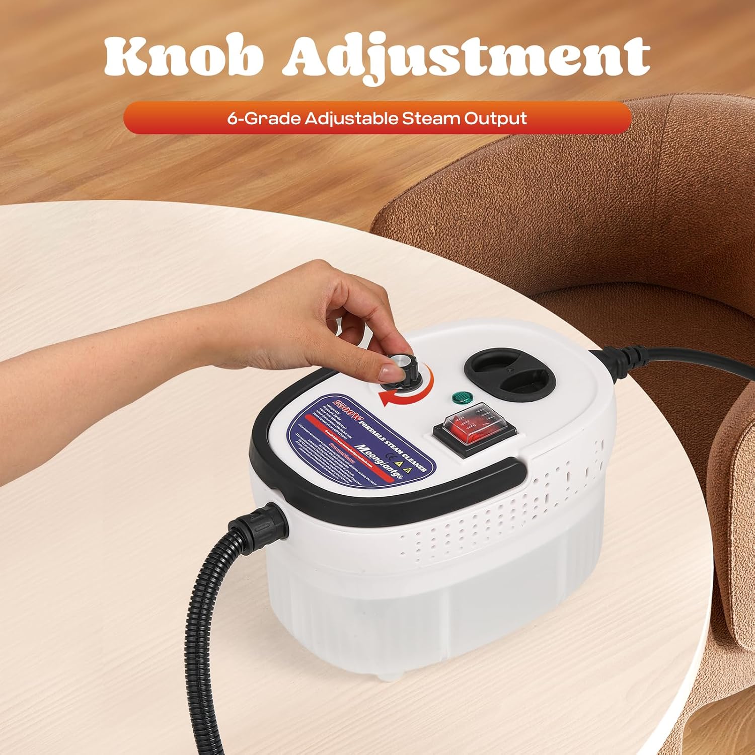 - 【Large Water Tank with Outlet】This upholstery steam cleaner is equipped with a large water tank of 42oz./1200ml capacity, allowing you to focus on cleaning instead of constantly refilling water (also supports adding water during operation). Besides, the water tank has a bottom outlet, so the portable steam cleaner can keep dry without breeding bact and producing odors