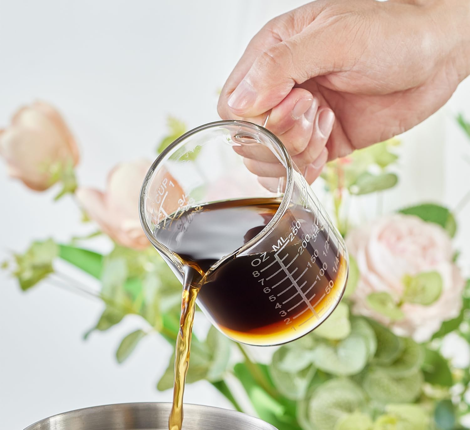 - [Comfortable and Lightweight Design] The high borosilicate glass measuring cup is lightweight, making it easy to handle and reducing the strain on your wrists. This makes it excellent for use in the kitchen, whether you're cooking, making coffee, or baking