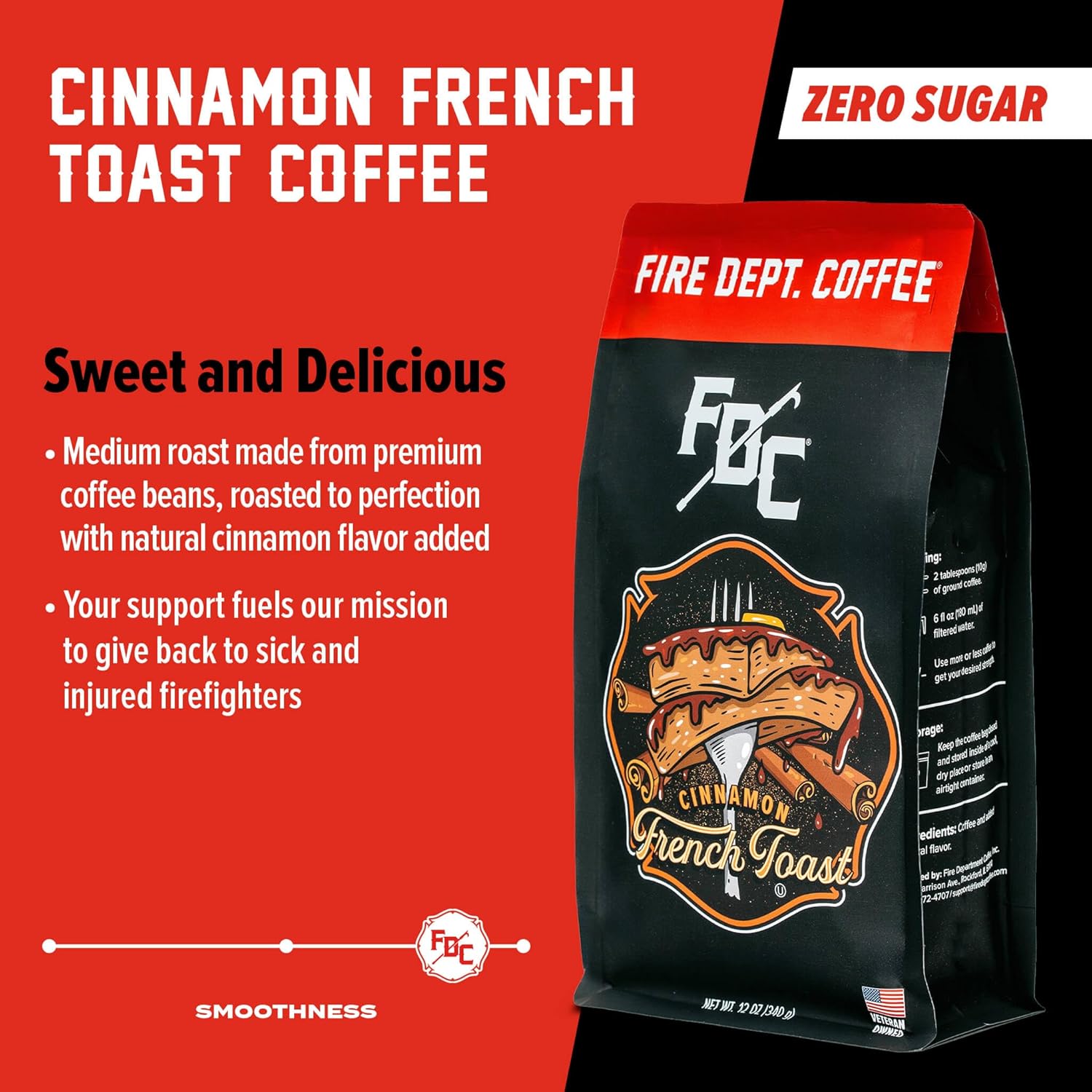 Fire Department Coffee - Gives Back to Firefighters - Cinnamon French Toast Coffee Beans - Roasted in the USA - Premium Whole Bean - Veteran Owned -12 oz