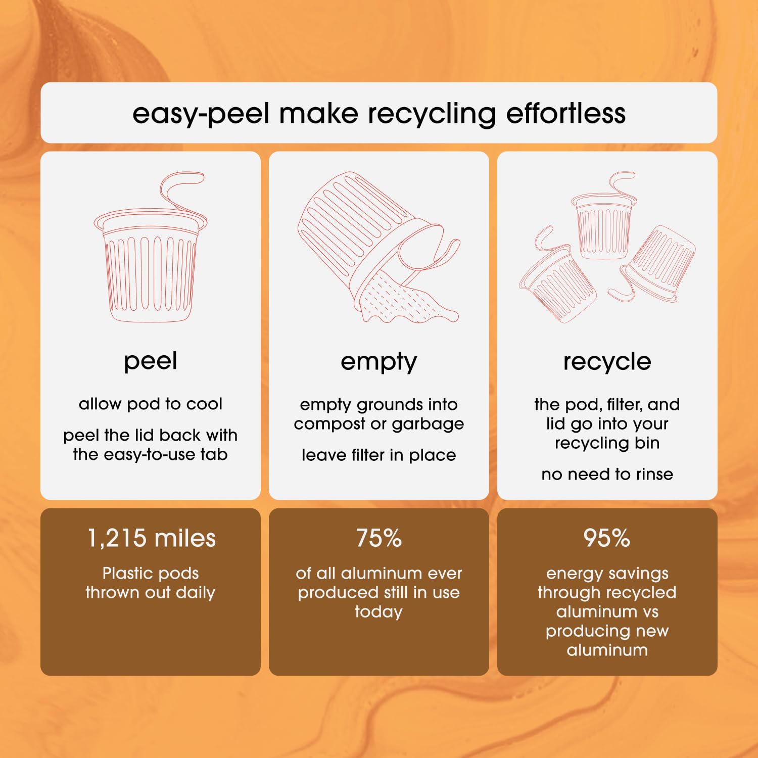 - Flavor Ridges: Each aluminum coffee k cup is designed with Flavor Ridges that provide more surface area for Cambio Coffee grounds, promoting more thorough water interaction during brewing. This optimized coffee pod design extracts 34% more flavor compared to standard pods.