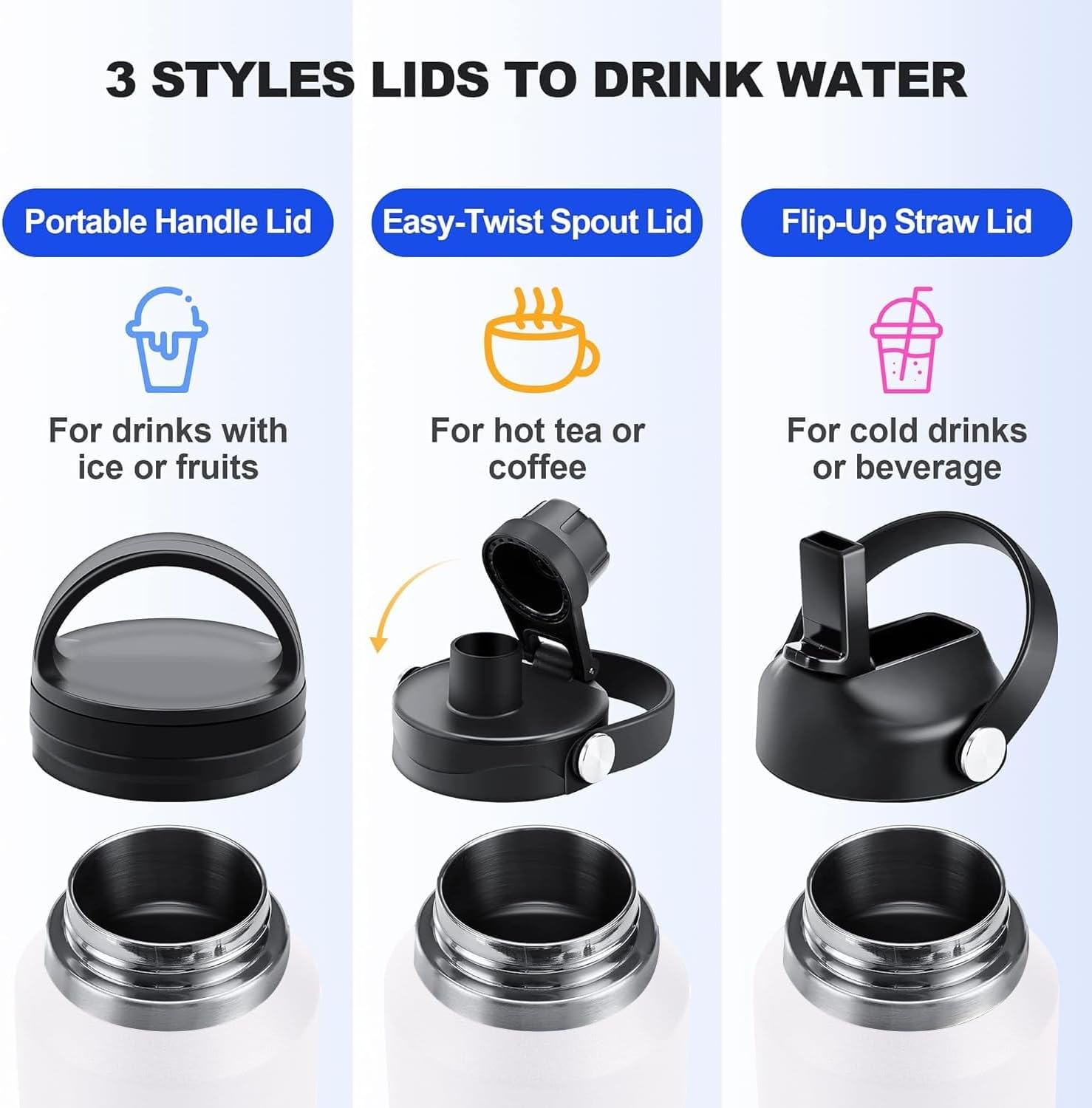 - 【TWO DIFFERENT DRINKING WAYS】Yes,SENDESTAR 32oz slim water bottle comes with TWO diffrent BPA-free lids can be switched at any time.Flexible straw lid with wide rotating handle makes drinking easier and more convenient.Wide handle spout lid is perfect for beach, camping,hiking,bicycling.This universal lids are also compatible with Hydro Flask, Takeya, HYDRO CELL and most wide mouth bottles.