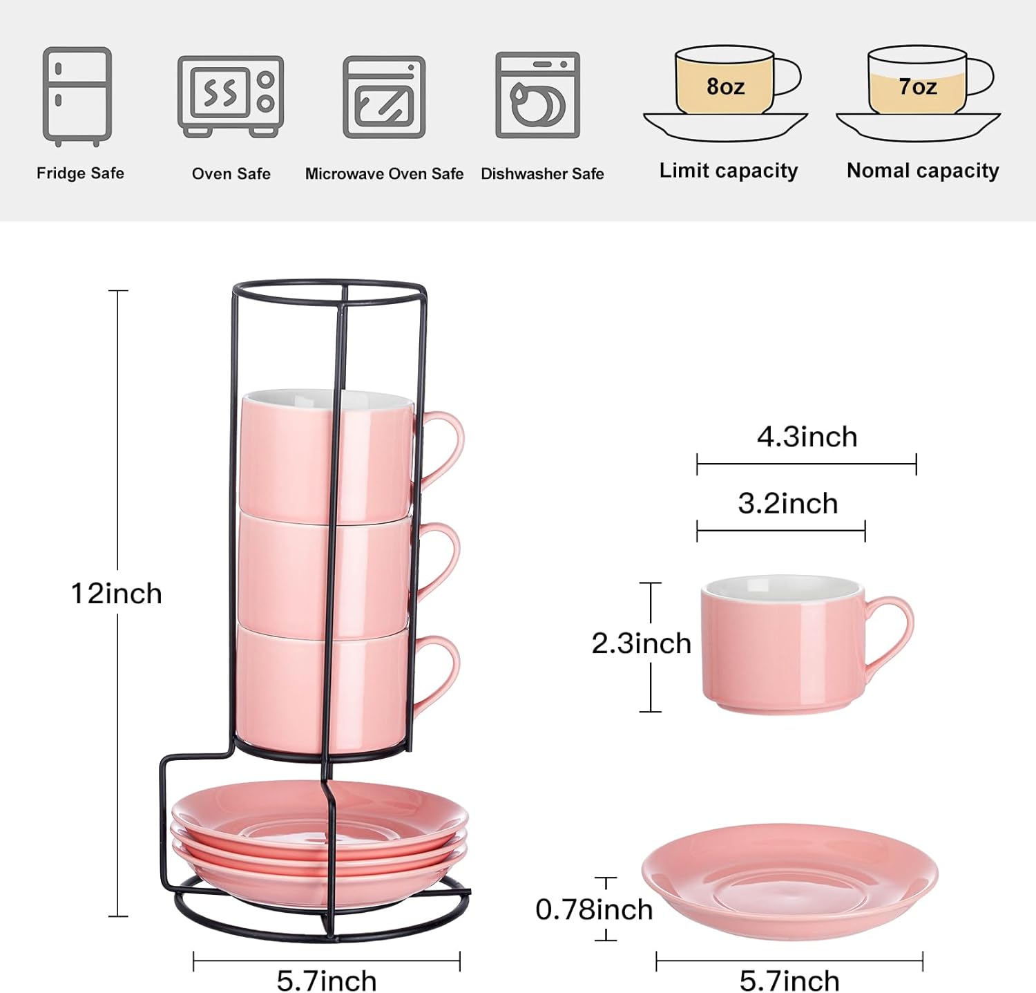 - 4.Experience the perfect blend of simplicity and sophistication with our 8 oz Espresso Cups. Designed to complement your espresso maker, they include saucers and a convenient stacking stand. The thick cup walls excel at heat retention, allowing you to savor your coffee.