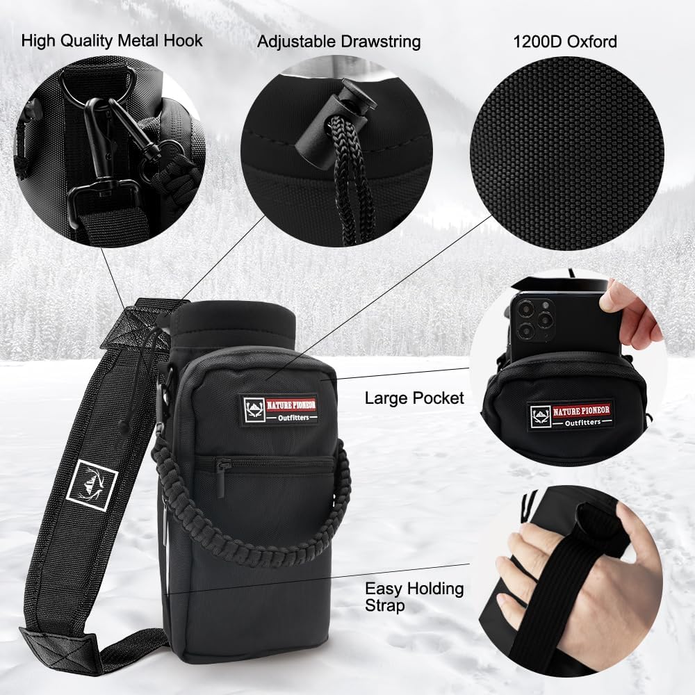 NATURE PIONEOR Insulated Water Bottles with Carrier Holder Sleeve - 24 ounce Stainless Steel Water Bottle with 3 Lids,straw,Keeps Hot and Cold