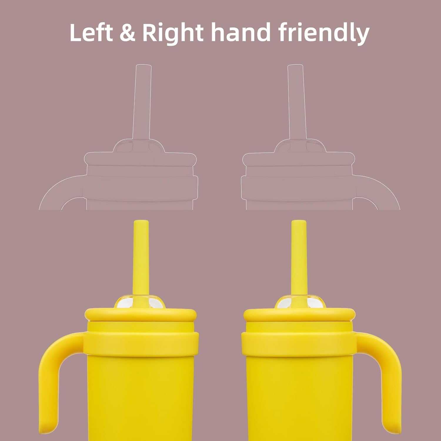 14 oz Tumbler with Side Handle, Insulated Water Bottle with Straw and 2 in 1 Lid, Stainless Steel Cup Travel Coffee Mug for Sports Office Gym,Yellow