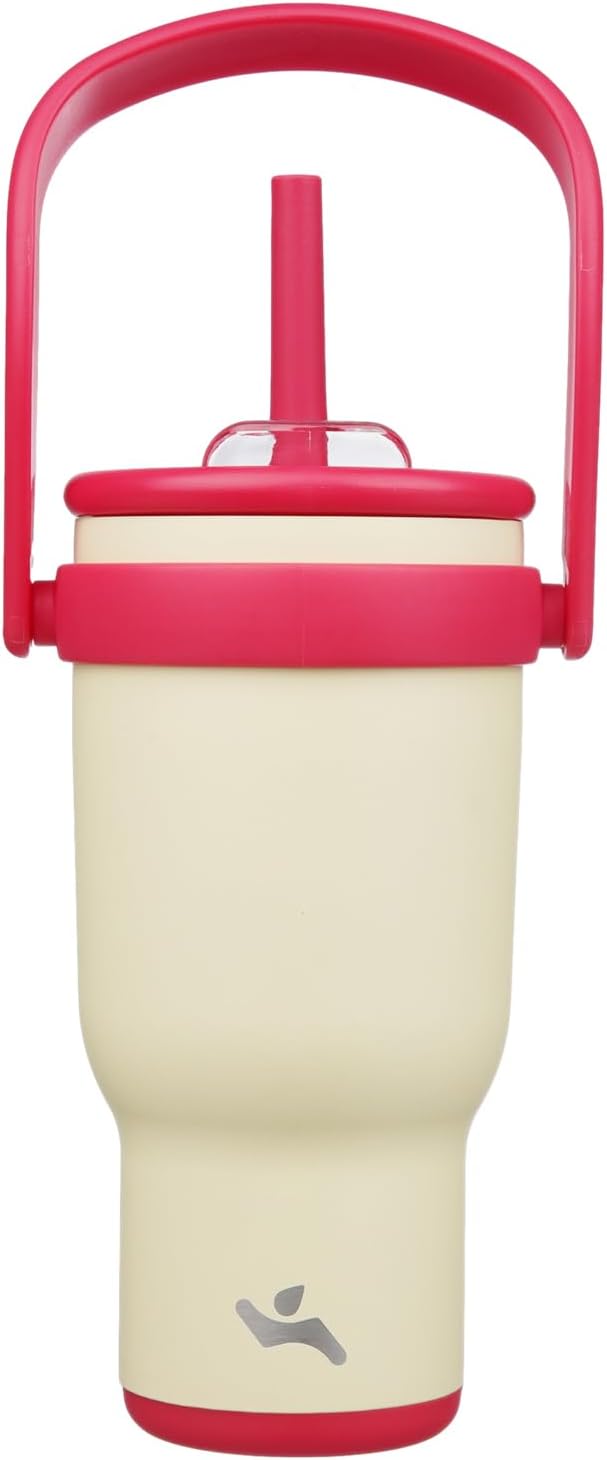 30 oz Tumbler with Side Handle, Insulated Water Bottle with Straw and 2 in 1 Lid, Stainless Steel Cup Travel Coffee Mug for Sports Office Gym,Cream