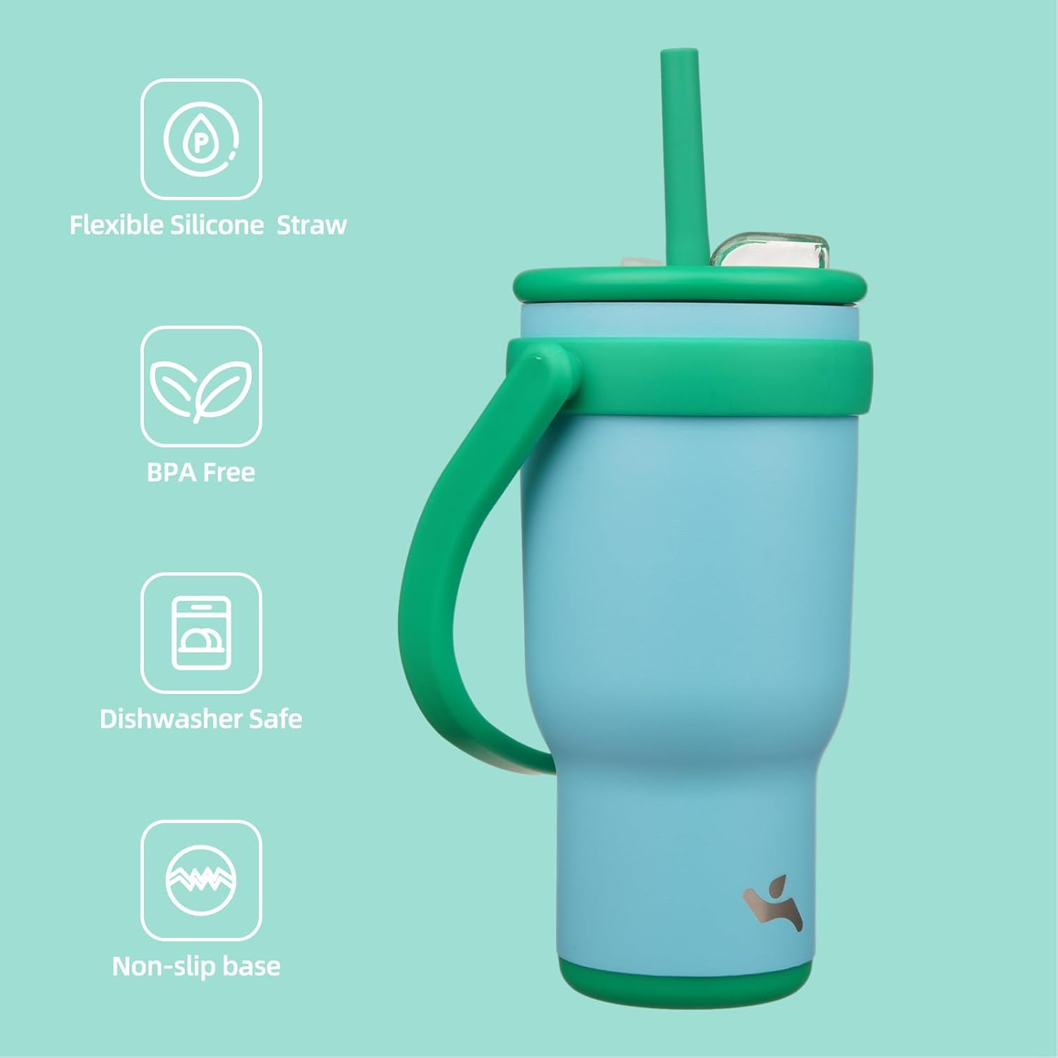 - Wide, ergonomic pivot handle for a comfortable, secure grip; non-slip silicone base prevents tipping and noise; fits car cup holders perfectly, making it ideal for home, office, and on-the-go use