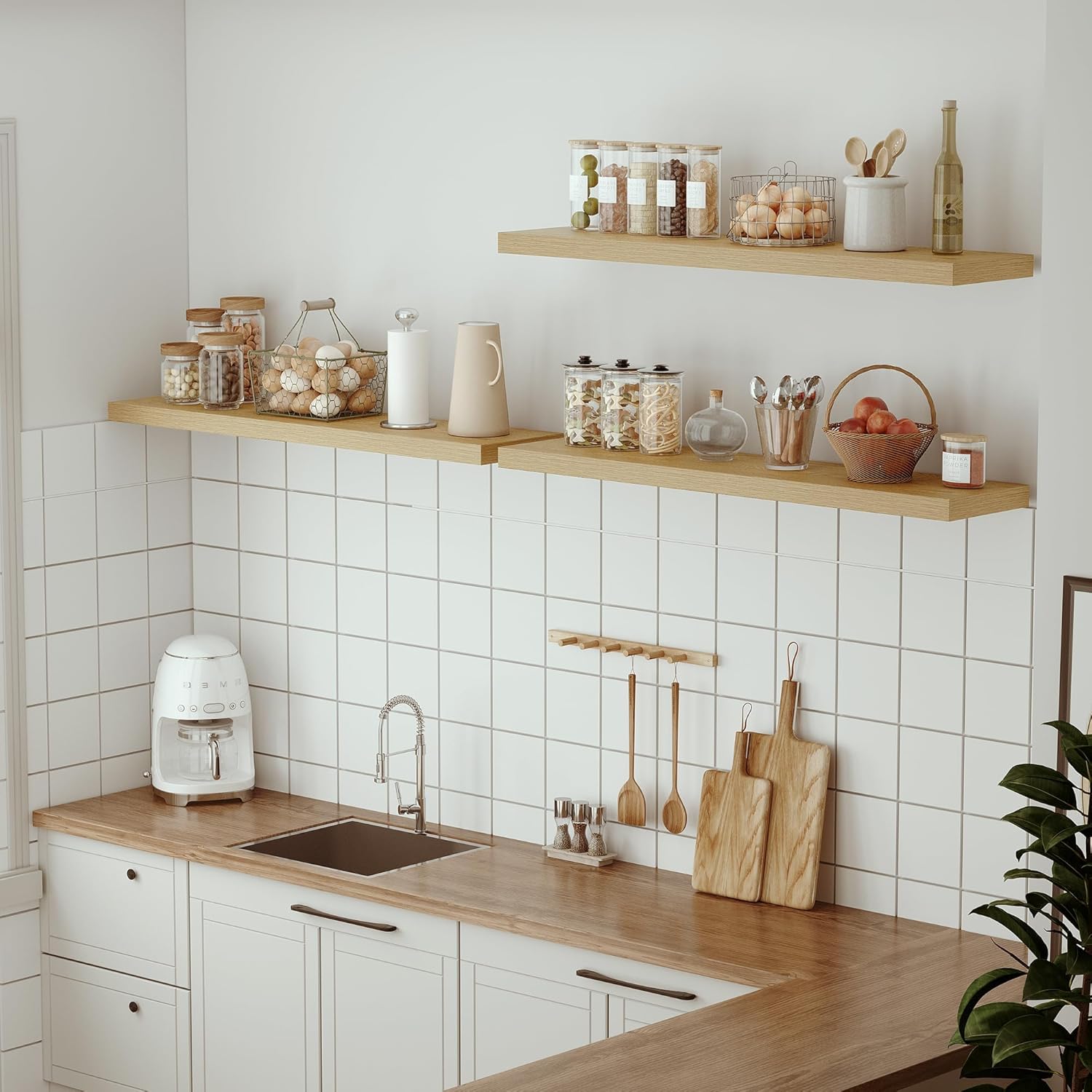 - Versatile & Functional - Our Decorative shelf for wall Adds character to any modern, traditional, rustic, or farmhouse decor home & kitchen styles.These shelves for wall decor above a small desk in your guest room, desks, fireplaces, over toilet storage shelf,living room wall decor, corner bookshelf, bathroom decor, office wall decor,or vanities and so on. If you are seeking easy-to-install, stylish floating shelves to add a contemporary touch to your home, these shelves are an excellent choice.