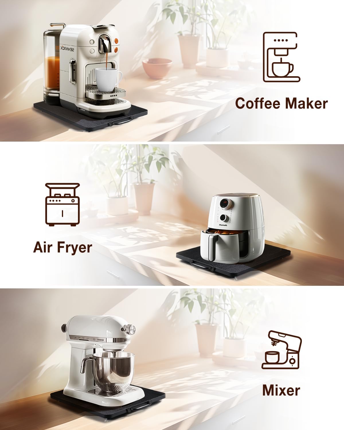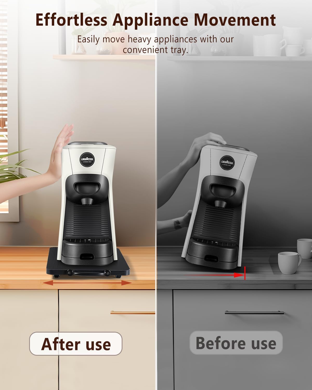 - Streamline Appliance Handling: Effortlessly move appliances with our Appliance Tray; equipped with appliance sliders for kitchen appliances; ideal as a coffee tray for countertop; ensures quiet, easy movement and a smoother kitchen experience