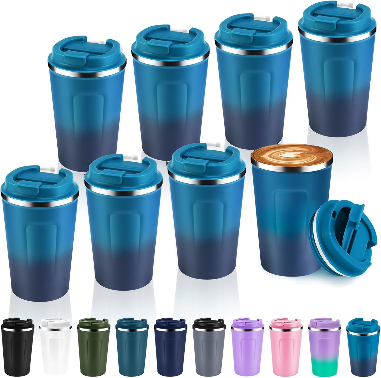 Volhoply 12 oz Double Wall Insulated Vacuum Travel Coffee Mug with Flip Lid Bulk 8 Pack,Reusable Stainless Steel Leak Proof Coffee Cup,Portable Thermal Tumblers for Hot & Cold Drinks(Dark Night,8 Set)