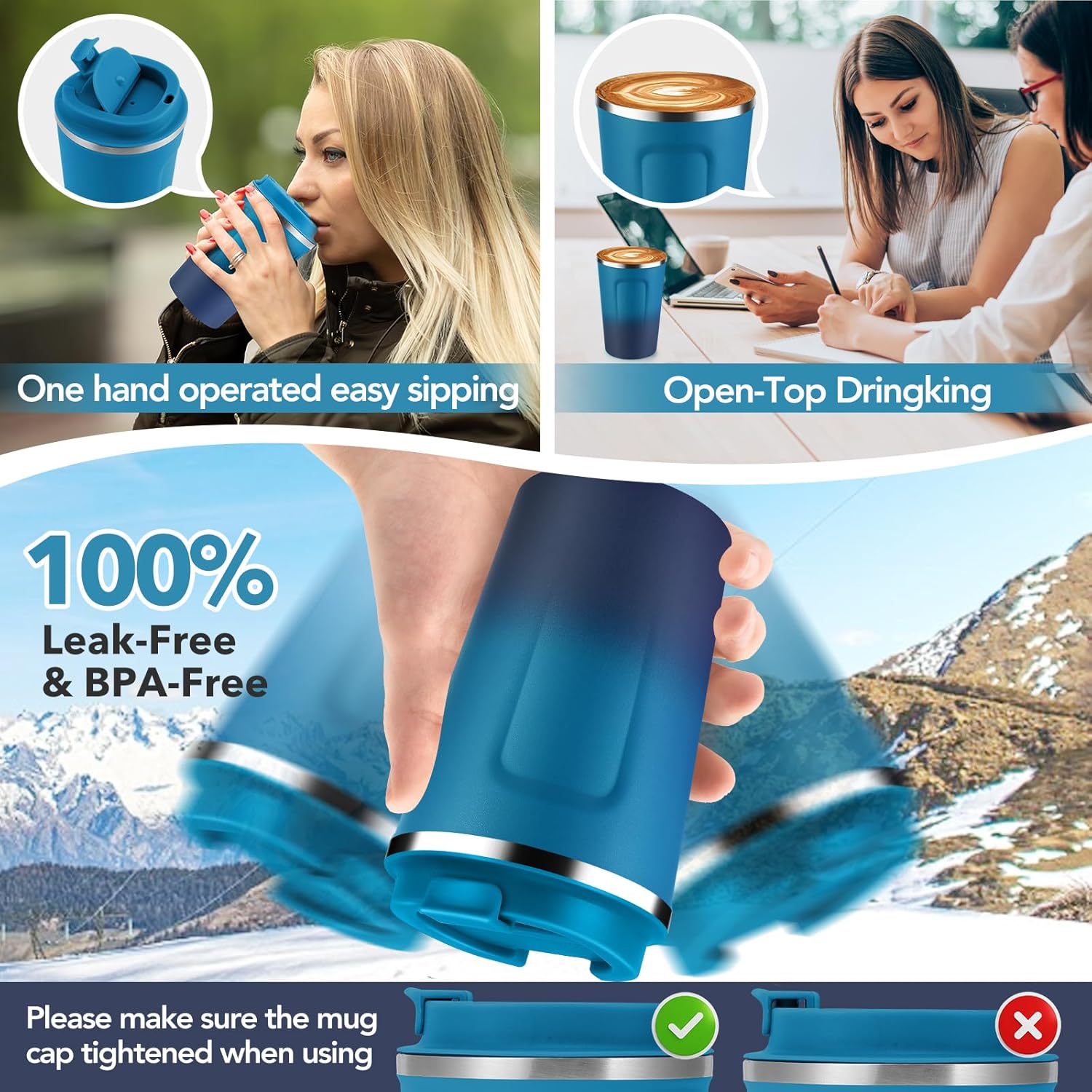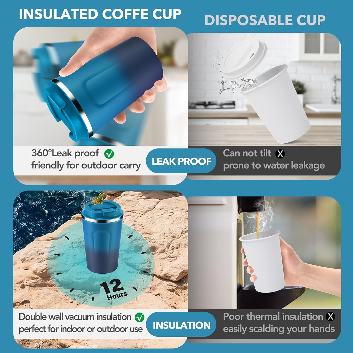 - 【Double Wall Vacuum Insulation】Our cups use double wall vacuum insulation technology to keep your favorite drinks at their ideal temperature for longer,keeping hot drinks warm for 6 hours and cold drinks cold for 12 hours.Allowing you to enjoy the best tasting coffee at any time of the day