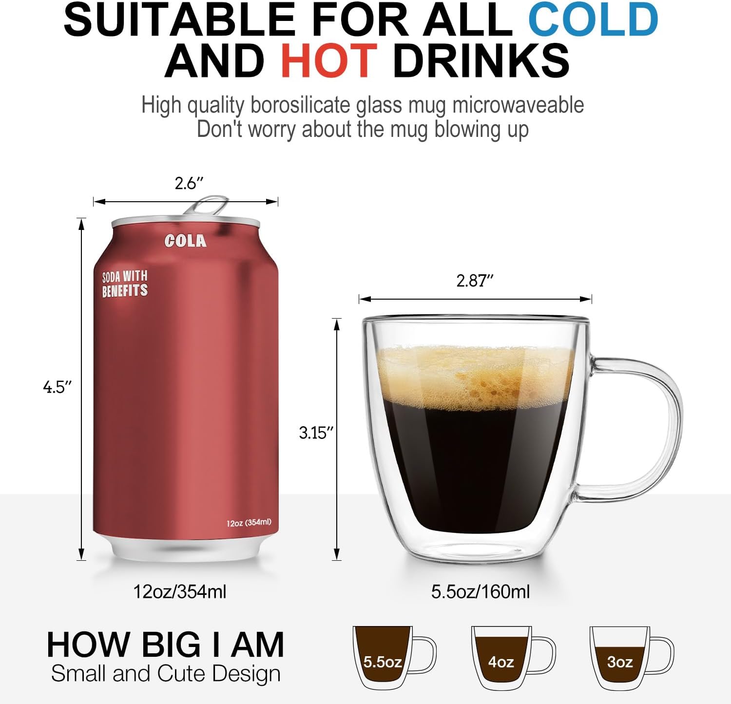 - High Quality Material:This glass coffee mug is 100% borosilicate glass, heat-resistant from -4°F to 302°F, Microwave and refrigerator safe, and easy to clean. It is an ideal drinking utensil at present. Stronger and more durable than ordinary glass. At the same time, borosilicate glass is much lighter than ceramic, Ideal for elderly or children with weak wrists