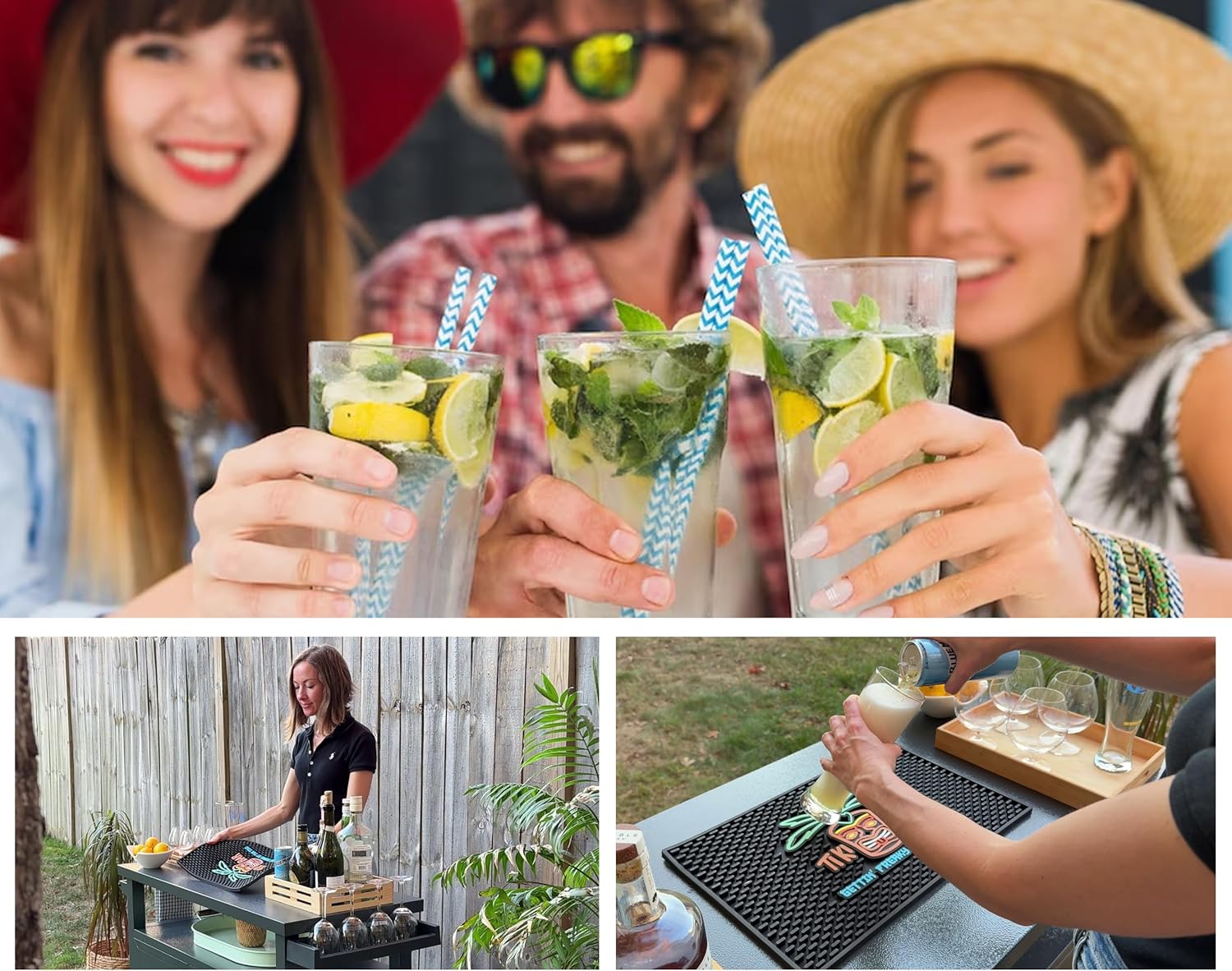 - Non-Slip Bartender Mat: Made from premium rubber, this 18x12 in bartender mat stays in place while keeping your bar mess-free, making it an ideal choice for bar mats for home bar or any tiki bar for outside patio.