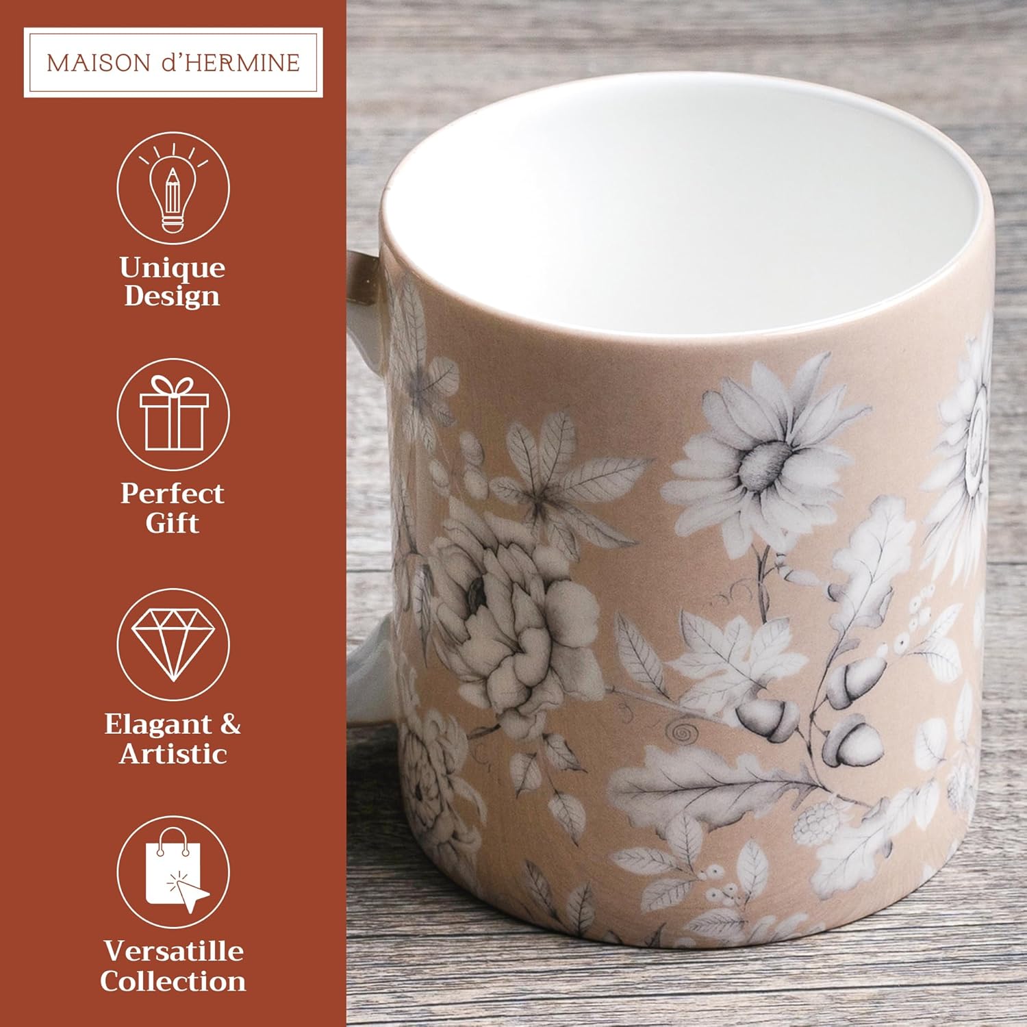 Maison d' Hermine Coffee Mug with Handles Fine Bone China Mugs Pack of One Tea Cups for Hot Beverages Cappuccino Latte Home Restaurant Office Perfect for Gift (Pretty Autumn - Mono Autumn, 15 Ounce)