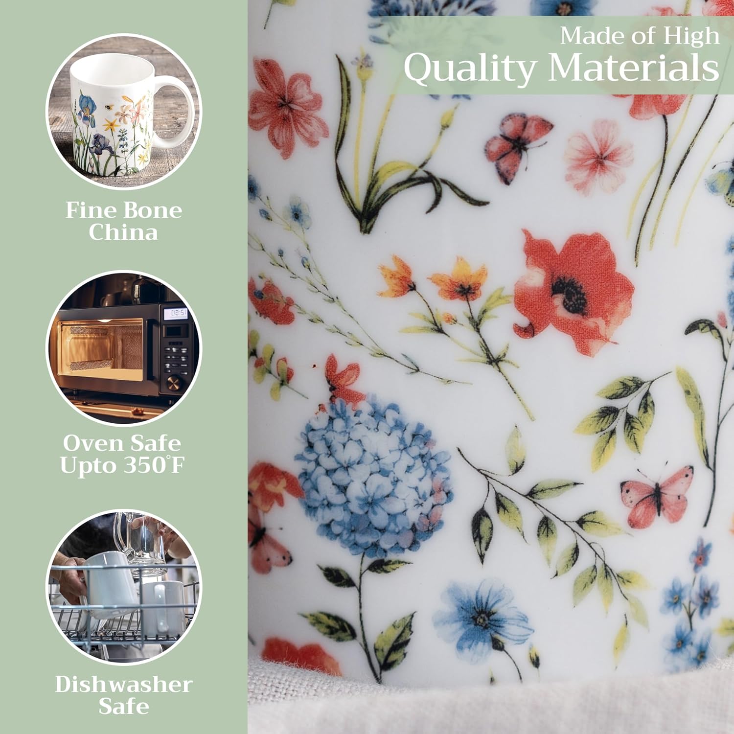 - Easy Care & Maintenance: Microwave, dishwasher, and oven safe up to 350°F. These bone china mugs are built for convenience and durability, making cleanup and reheating simple without compromising on quality