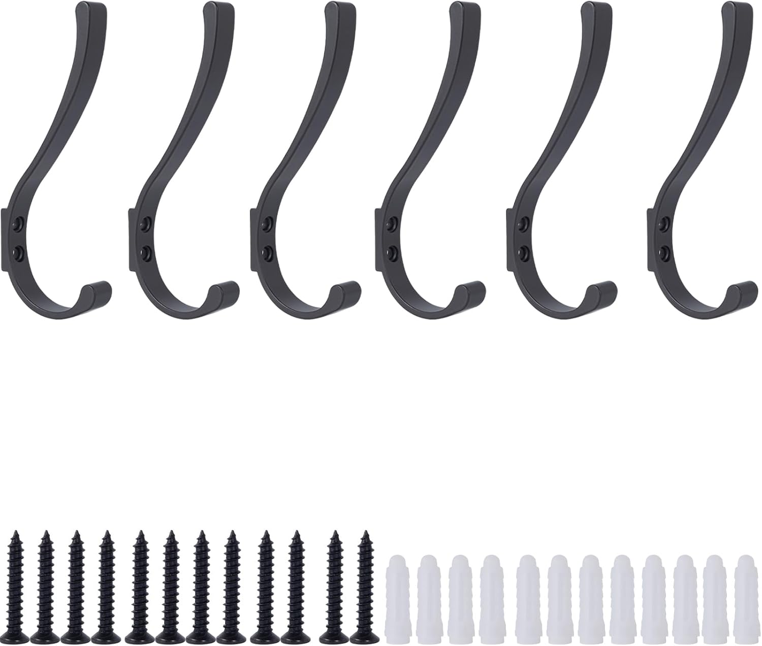 6 Pack Hanging Coat Hooks Wall Mount, Coat Hanger Wall Hangers, Metal Hooks for Hanging Heavy Duty, Screw in Hooks for Hanging Towels, Clothes, Backpack, Hat, Bag, Jacket, Key, Robe, Backpack Grey