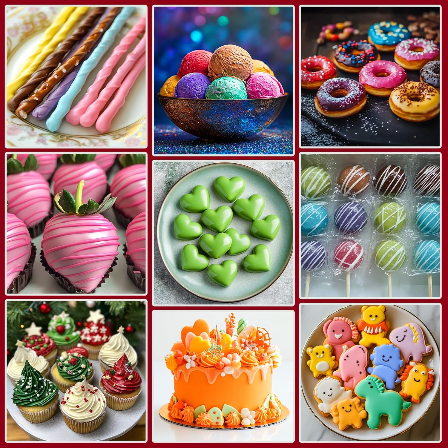 - Food-grade Safety: Our oil based food coloring for chocolate is formulated with vegetarians in mind, as it doesn't have eggs, peanuts, and tree nuts. The oil food dye is odorless and tasteless, ensuring that it won't alter the flavor or texture of your food. Rest assured, your creations will be both visually appealing and deliciously satisfying.