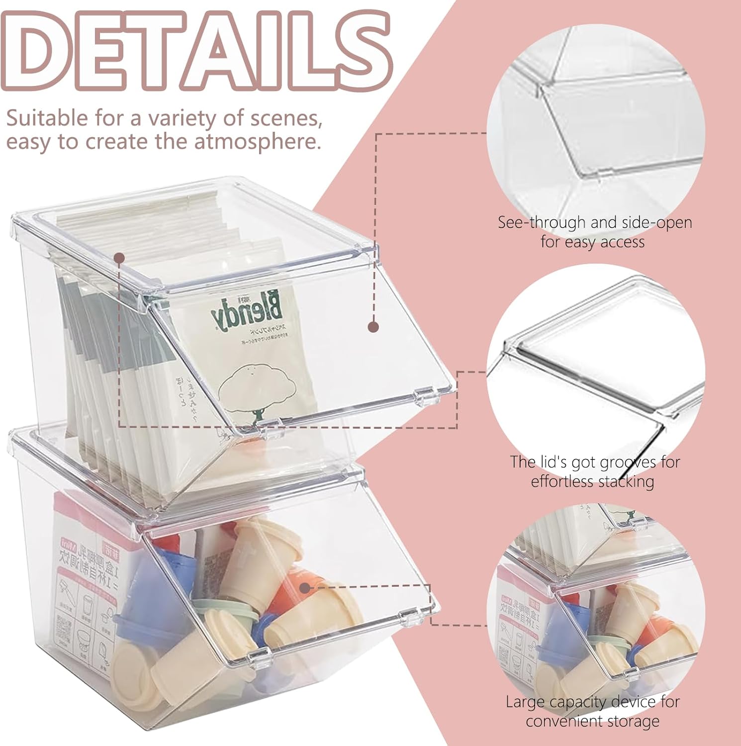 - Front Access Lid: Each box has a hinged front lid for easy access to items, even when stacked. No need to unstack boxes to reach what you need from the lower box.