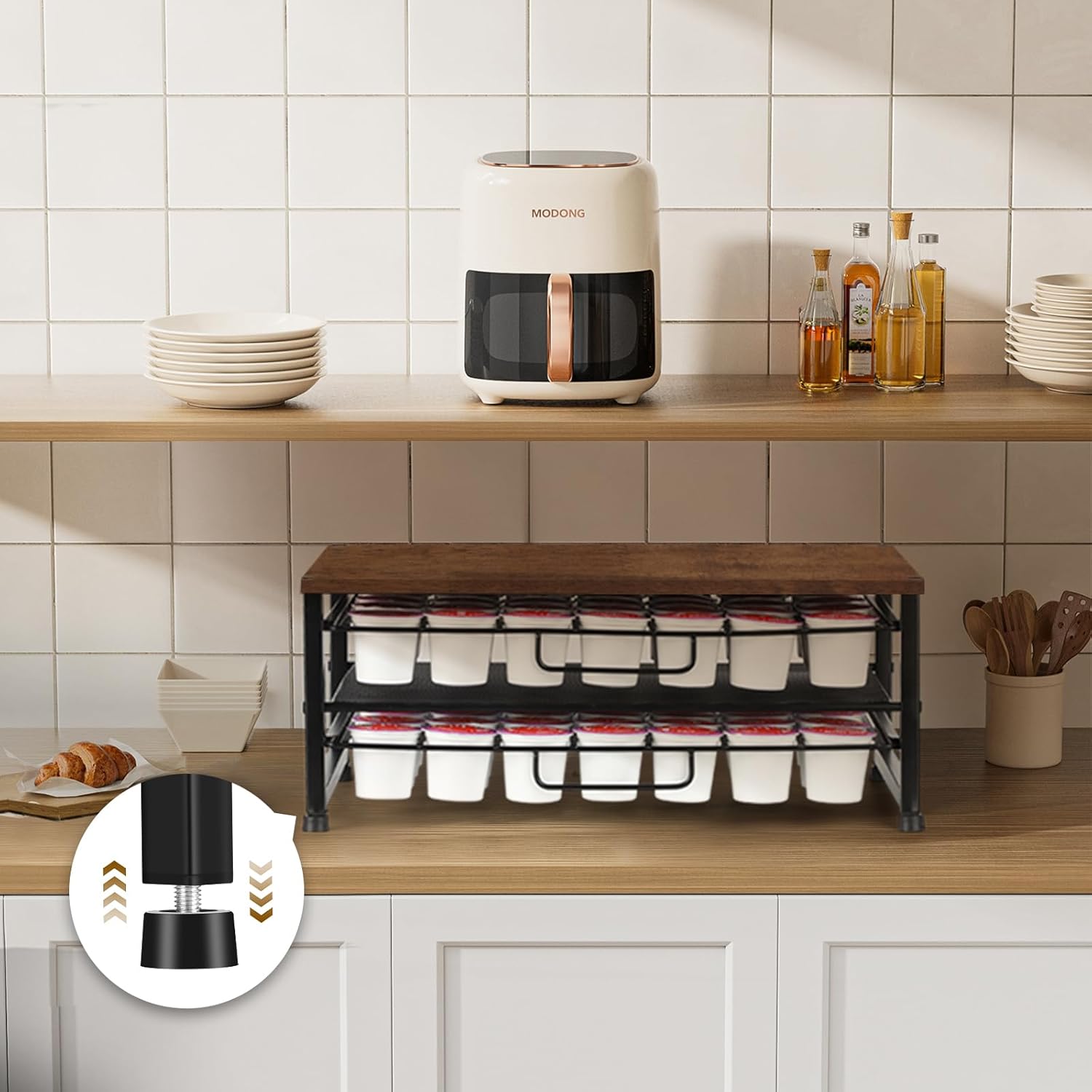 - 【High Quality】 Constructed with a sturdy metal frame, this coffee pod holder can support even the heaviest coffee makers. Equipped with four non-slip feet for tabletop protection and adjustable height, it ensures a stable, worry-free coffee experience