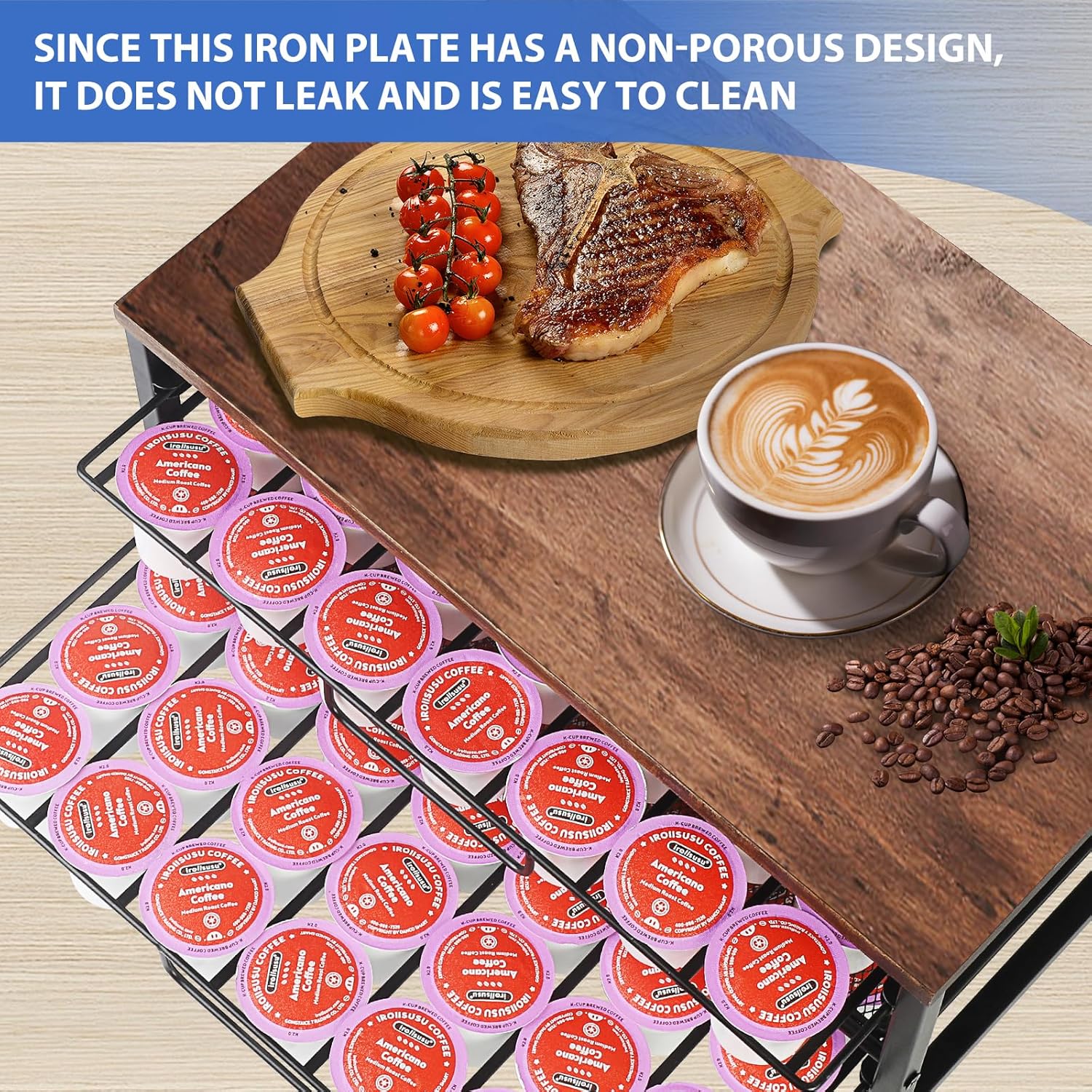 - 【Large Capacity】 The ECOLOVI k cup holder organizer features two spacious storage drawers that can hold up to 70 coffee pods. The pull-out design allows you to easily access and organize your favorite coffee flavors, keeping your coffee area tidy and organized