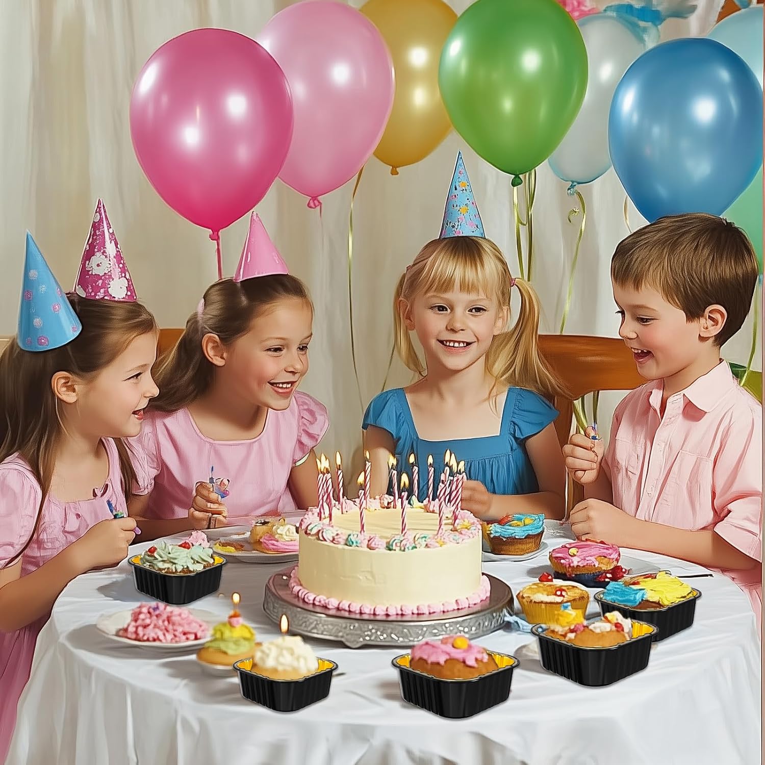 50 Pack Square Mini Cake Pans with Lids,Mini Loaf Pans with Lids,Aluminum Foil Baking Cups,Disposable Ramekins Cupcake Cups,Dessert Cups for Wedding Birthday Party,5oz (Black&Gold)