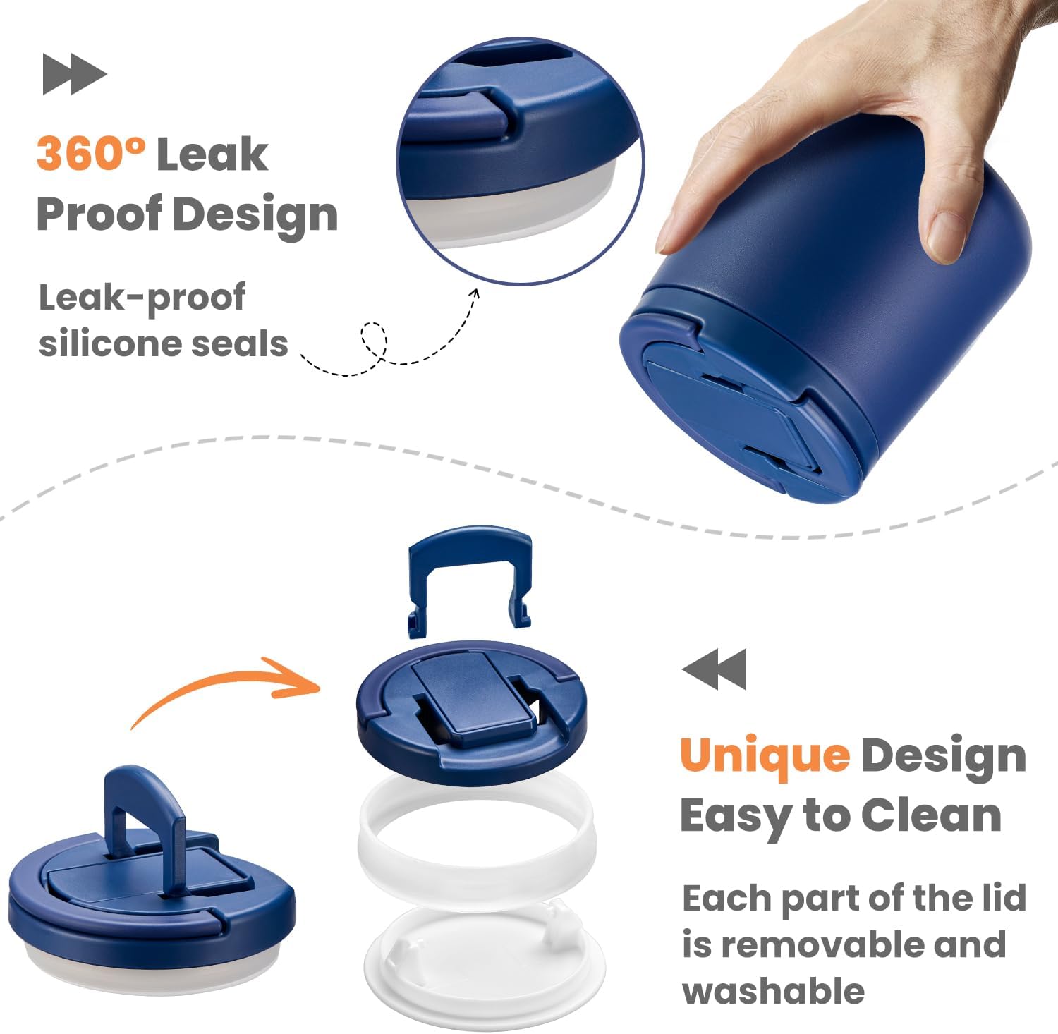 - Use Tips and Notes: In order to keep your food hot or cold for a longer period of time, we recommend preheating/pre-cooling your food or soup in hot/ice water for 5~10 minutes before placing it in the food jar. Note, when you remove the lid for cleaning and then re-installing, q please follow the installation steps in the picture, when installing the buckle please squeeze the top and bottom part of the lid with your hand to utilize the installation.