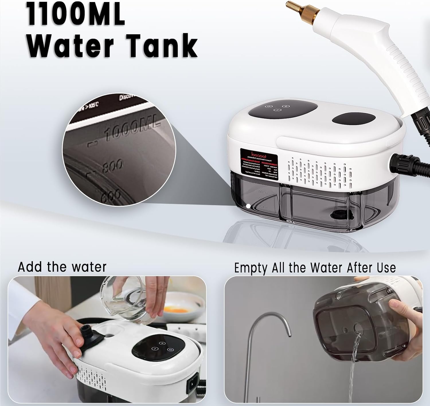 - 【1200ml Water Tank & Portable】The home portable cleaning machine is equipped with a 1.2 large water tank, allowing you to focus on cleaning, not only supporting adding water at work, but also using water for 1 hour at a time, even if it is far away from the water source, it can extend the cleaning time without adding water frequently, providing work efficiency. In addition, the washer's compact design weighs only 3.8 pounds, making it easy to carry with you for cleaning.