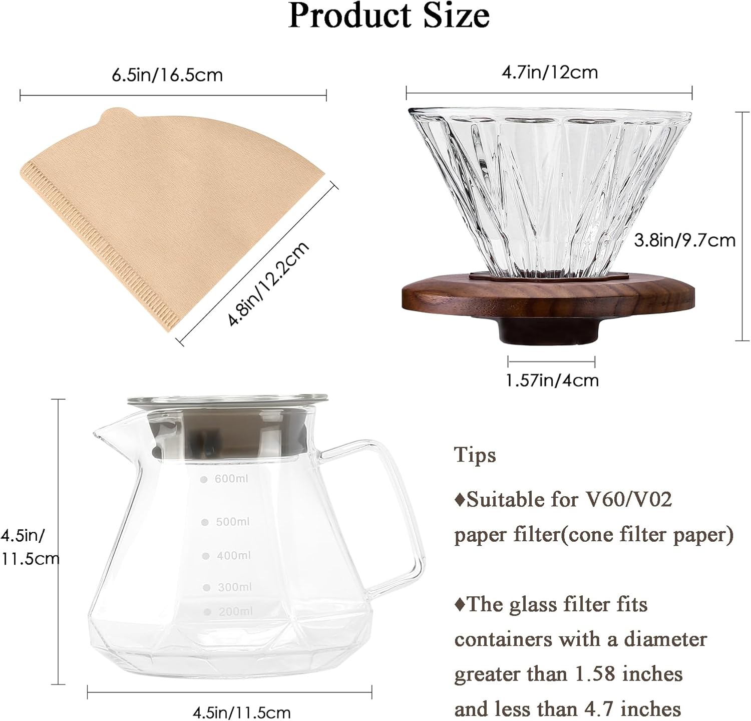 - ใ๐๐๐ ๐๐ก๐๐๐ญ๐ฌ ๐จ๐ ๐๐๐ฉ๐๐ซ ๐ ๐ข๐ฅ๐ญ๐๐ซใEquipped with 100 sheets of disposable filter paper, which is made of pure wood pulp, no odor, unbleached, and does not contain any chemicals. The type of filter paper is conical V02 filter paper, which is very convenient to replenish after 100 pieces of filter paper are used up.