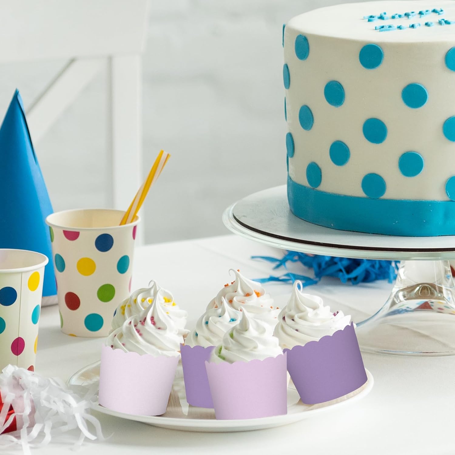 Whaline 120Pcs Purple Paper Baking Cups Scalloped Edge Cupcake Wrappers Gradient Purple Cupcake Muffin Cases for Wedding Birthday Baby Shower, 3 Colors