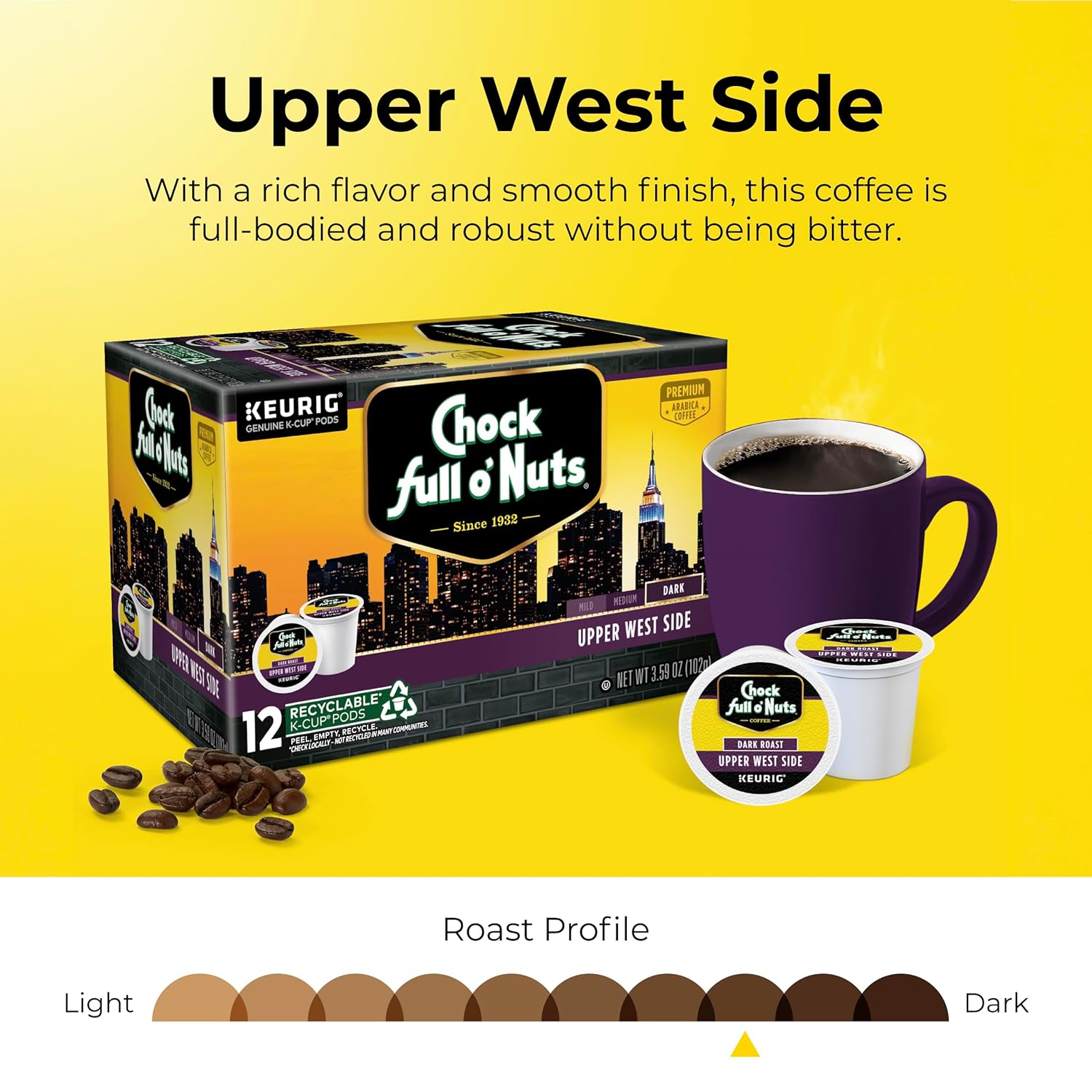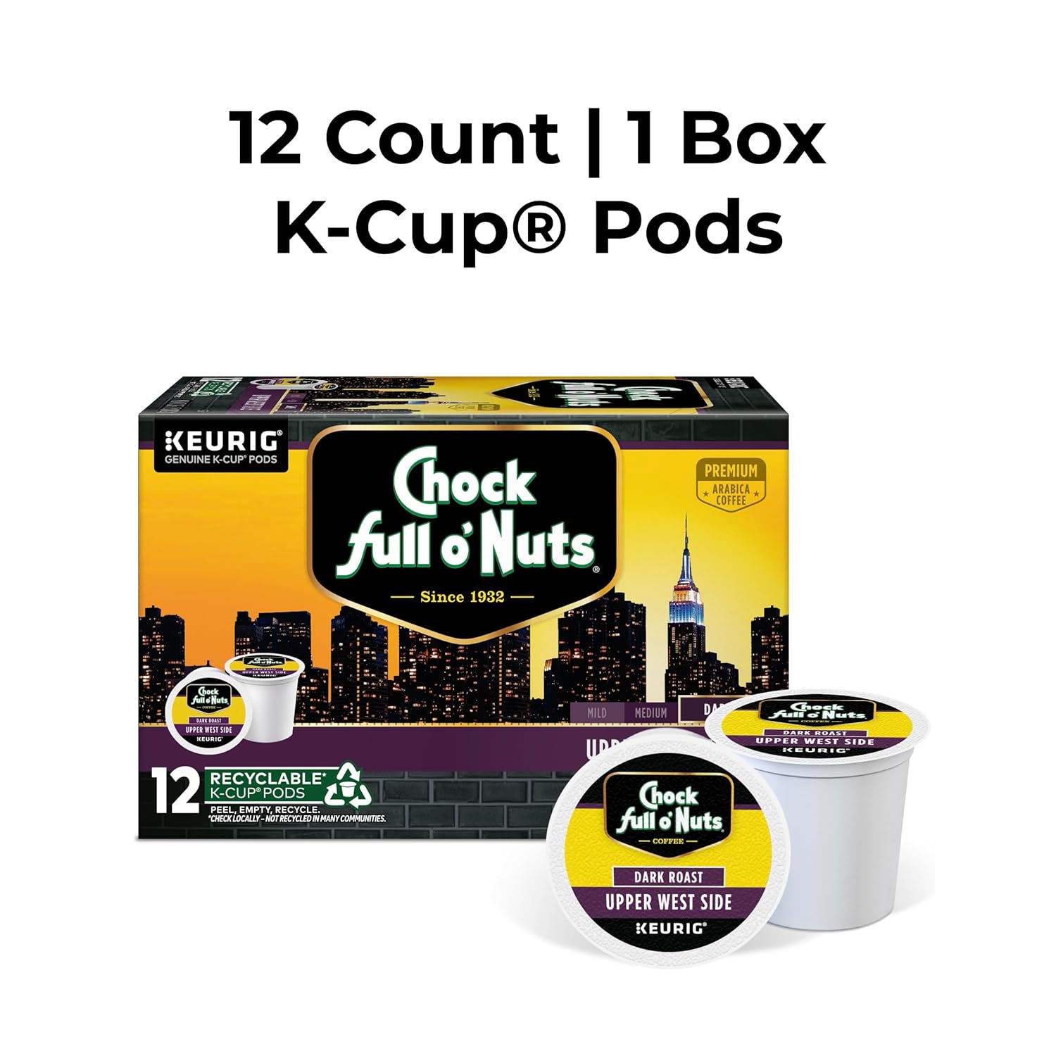 Chock full o’Nuts Upper West Side Keurig K-Cup Pods for Keurig Brewers – Premium Arabica, Dark Roast – Single Serve – 1 Pack of 12 K-Cup Pods