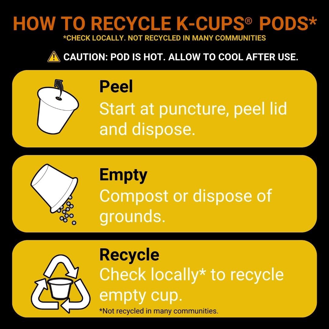 - RECYCLABILITY: Simple. Delicious. And recyclable*. Enjoy the same great-tasting coffee you know and love, and when you’re done, just peel, empty, and recycle. Enjoy great coffee while making an environmentally conscious choice. *Check locally, not recycled in many communities.