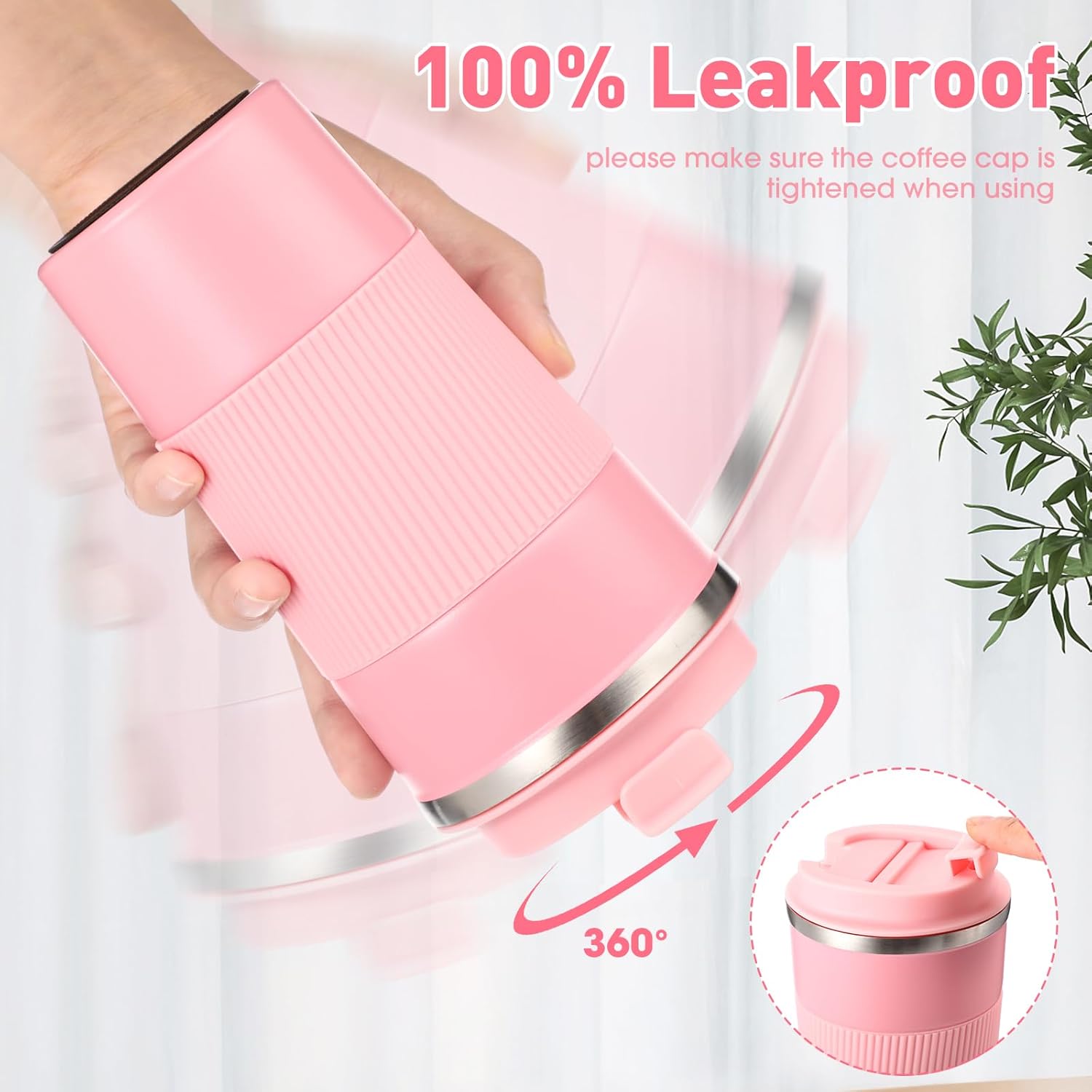 - Leakproof Travel Coffee Cup: the insulated coffee mug with spiral side comes with sealing rings for effective leakproof travel, you can shake the mug as much as you like without worrying about liquid spilling over and wetting your travel or office bag, the travel coffee mug includes a clamshell opening that makes it easy to drink with one hand, whether you're walking or sitting in the car, the size of the spout ensures that you will not get spilled in an emergency