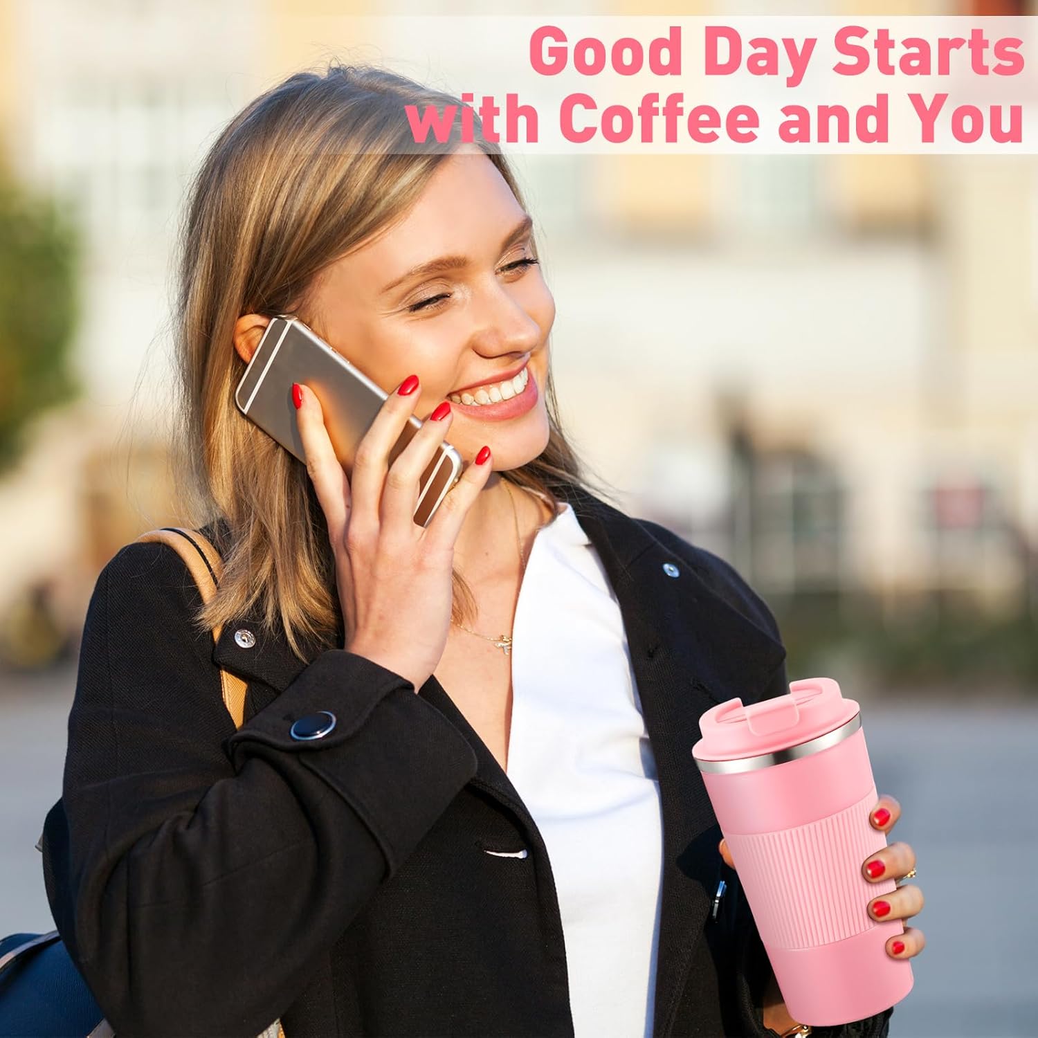 Sabary 4 Pack 16 oz Bulk Travel Coffee Mug with Lid Reusable Vacuum Insulated Coffee Tumbler Double Wall Thermal Stainless Steel Camping Tea Cup for Christmas Winter Drinks Employee Gift(Pink)