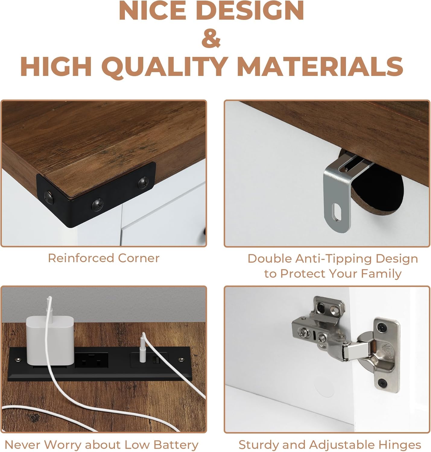 - 【Built-In Charging Station】There are 2 AC outlets and 2 USB ports on the top, and a 6.5-foot power cord, to charge your devices and keep them within reach.