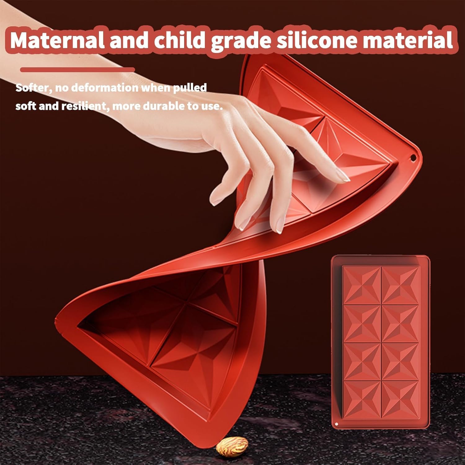 - đ«ăMaterialăChocolate bar mold is made of high quality silicone material, which is durable, not easy to deform or produce strange flavors, and has a longer service life than other disassembled chocolate molds.