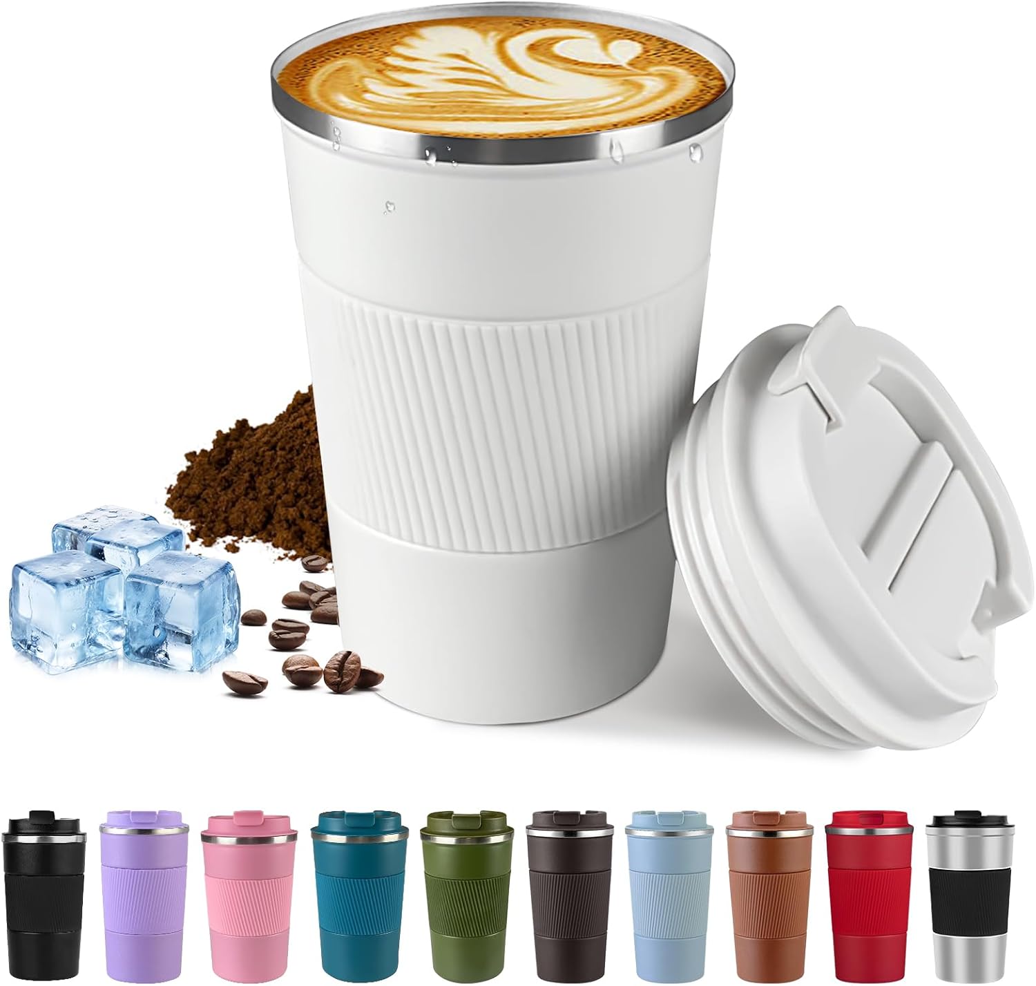 Vacuum-Insulated Stainless Steel Travel Coffee Mug, Leak-Proof Reusable Coffee Cup with Lid - Keep Hot & Cold Drinks for Hours, Durable Thermos Tumbler for Men & Women (3rd-White, 17OZ)