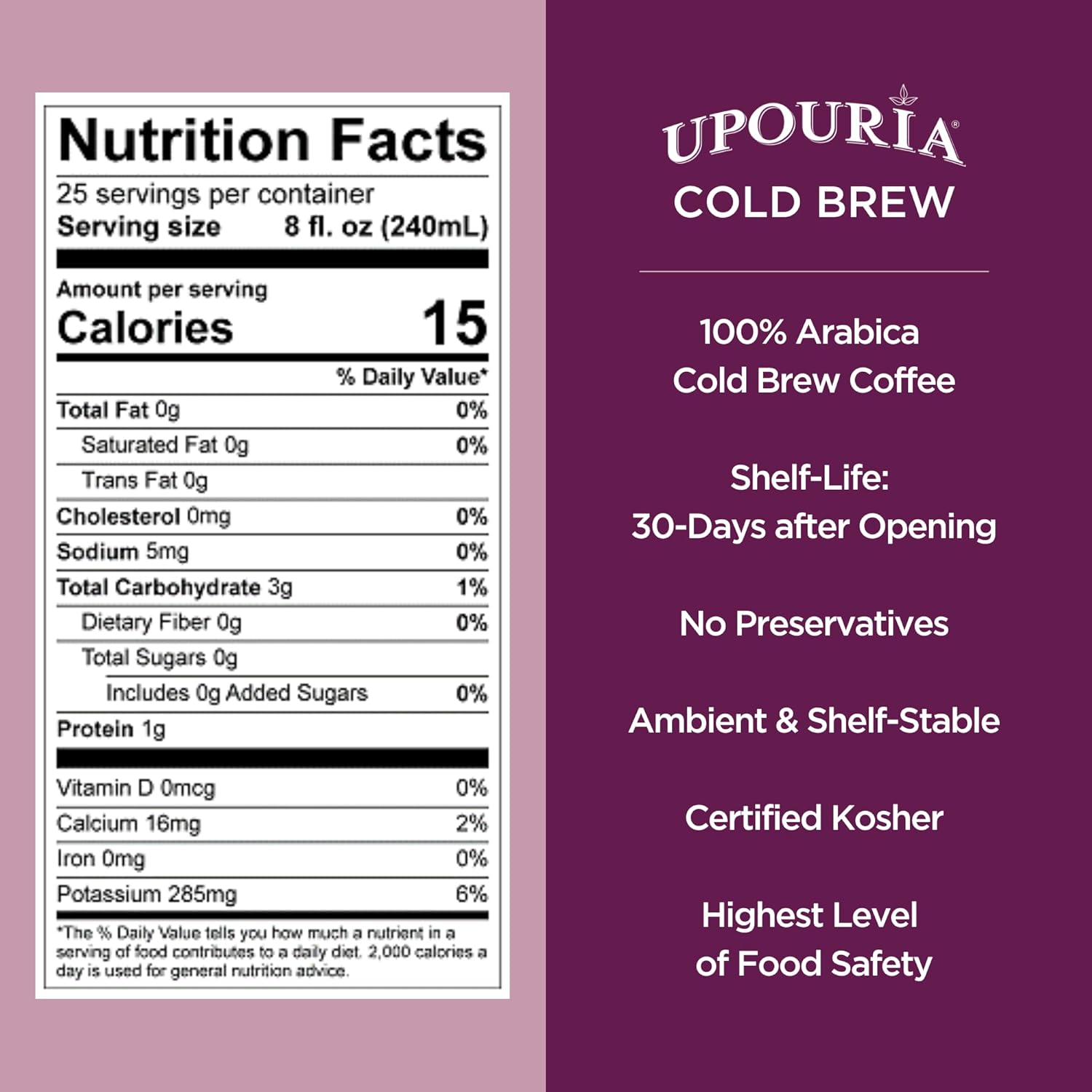 - Perfect for On-the-Go: Upouria Cold Brew Coffee brings bold, robust flavor with every sip. Whether you're running to work or craving for an iced coffee, our coffee cold brew delivers smooth, full-bodied taste that pairs perfectly with your busy lifestyle. Low in sodium, yet high in satisfaction.