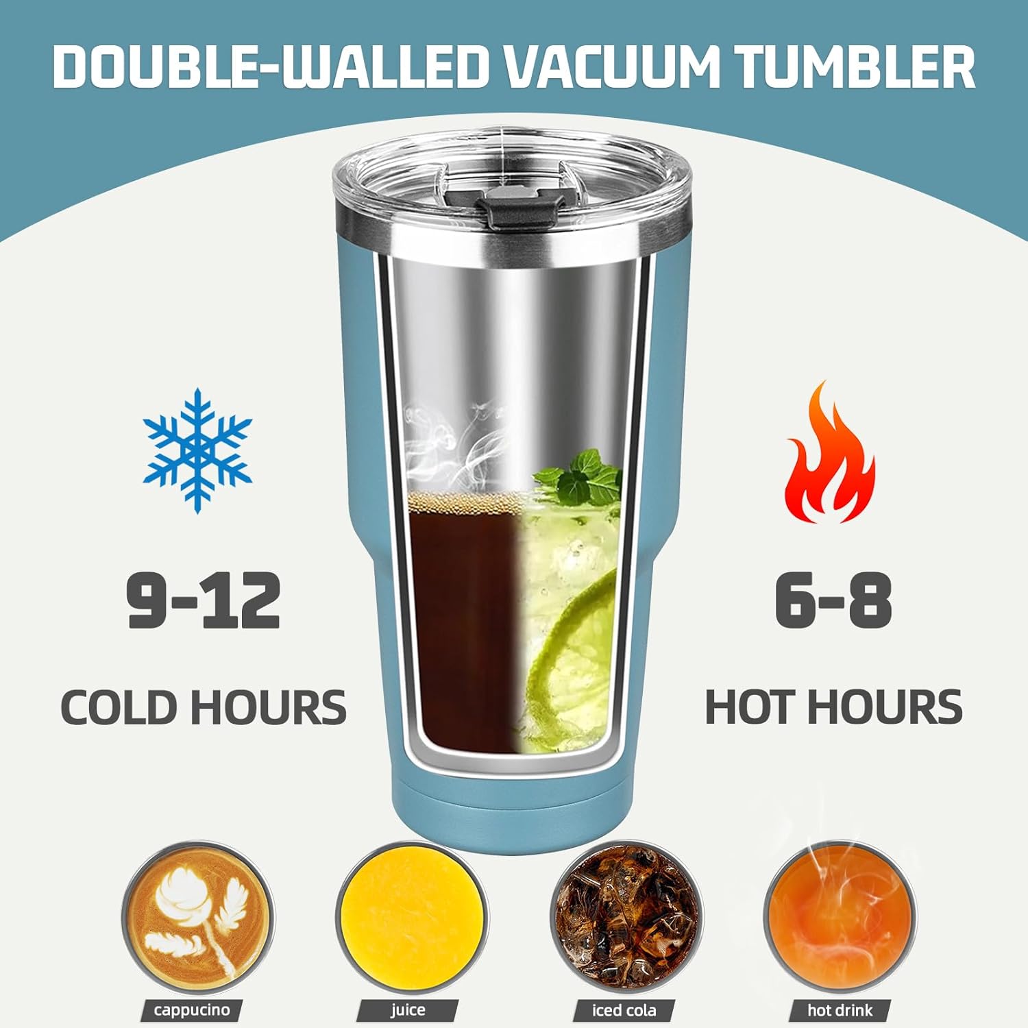 - ✅【𝗗𝗼𝘂𝗯𝗹𝗲 𝗪𝗮𝗹𝗹 𝗩𝗮𝗰𝘂𝘂𝗺 𝗜𝗻𝘀𝘂𝗹𝗮𝘁𝗶𝗼𝗻】30 oz tumbler with straw is designed with double wall vacuum insulation that will not produce condensation and will keep your drink cold or hot for a long time. At room temperature, it can keep your drinks cold for up to 12 hours and hot for up to 8 hours.With a large 30 oz capacity, it can meet your daily or travel drinking needs and keep you hydrated at all times.