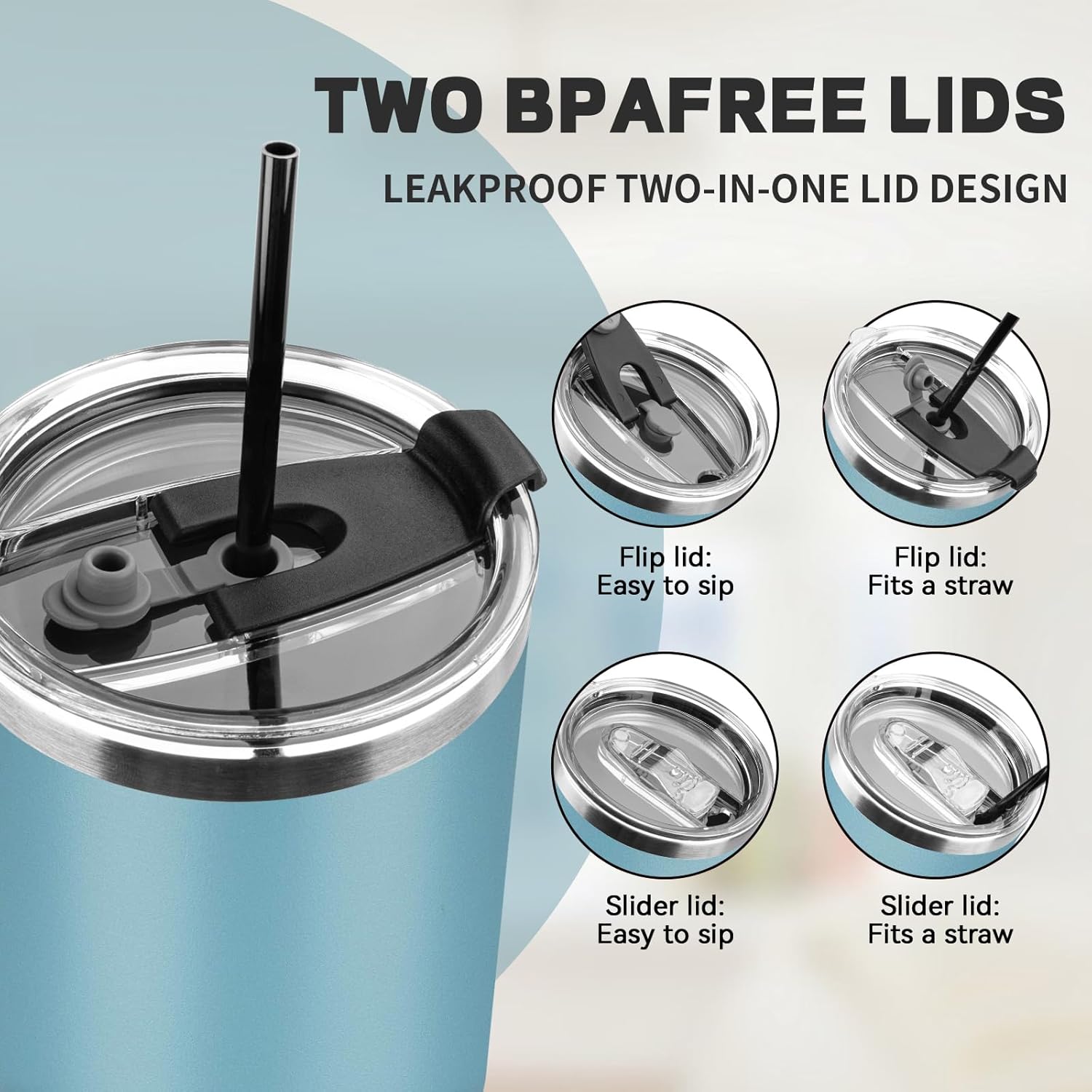 - ✅【𝗦𝘂𝗽𝗲𝗿𝗶𝗼𝗿 𝗟𝗲𝗮𝗸-𝗽𝗿𝗼𝗼𝗳 𝗣𝗲𝗿𝗳𝗼𝗿𝗺𝗮𝗻𝗰𝗲】The travel mugs insulated for hot and cold features a unique 3-in-1 lid design that lets you sip, drink through a straw, or enjoy the wide-mouth design. The silicone seal on the top of the lid is so tight that it won't leak even if shaken or accidentally poured. When sipping, no liquid will leak from the lid except through the sipping hole. Also, the sealed lid further enhances heat retention.